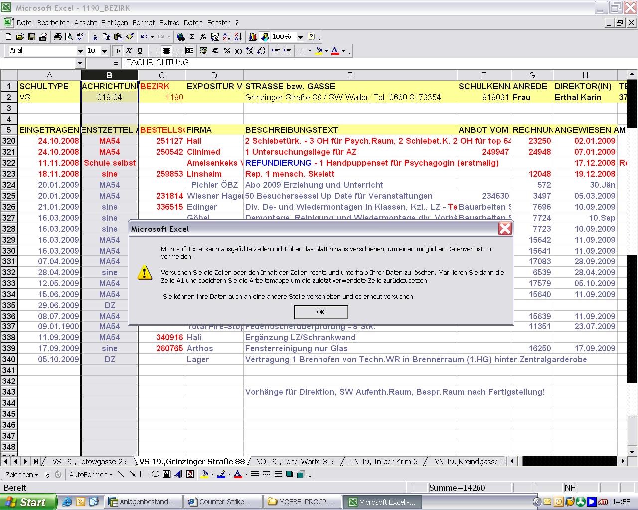 entferne ich komplett die spalte dann rückt alles nach, schreibt er mir dann wieder den fehler^^