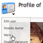 Wenn Sie die Verwarnung abschicken, können Sie zwischen vorgefertigten Verwarnungen wählen oder eine individuelle Verwarnung aussprechen. Geben Sie an, bis wann die Verwarnung gültig ist und wieviele Punkte dafür entfallen. Die Punkte von Verwarnungen addieren sich, so dass bei Erreichen einer bestimmten Punktzahl das Fehlverhalten des Benutzers sanktioniert wird und er eine Strafe erhält (z. B. Sperrung der Signatur). Sanktionen können nur vom Administrator definiert werden.