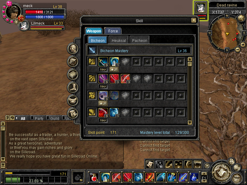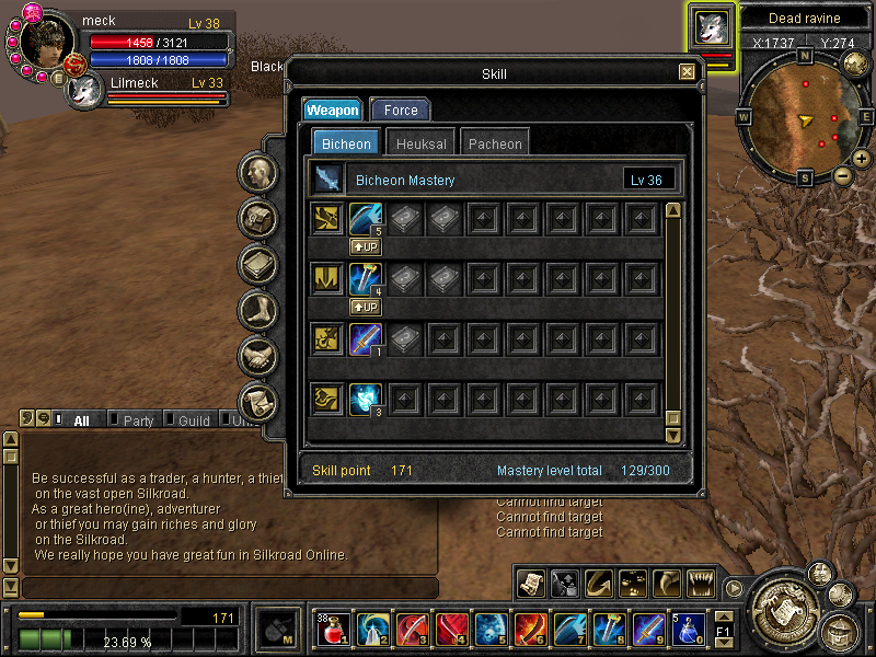 Auf Murphys Post mal bezogen.Ich würde bei einem Blader überhaupt nicht Ice,Pacheon(Bogen) oder Heuksal(Glavie/Speer) skillen,da man als Waffe ja das Blade nutzt und sich deshalb Bicheon anbietet,da man bei Pacheon und Heuksal-Skills ja die entsprechenden Waffen in der Hand haben muss,damit man die Skills der Mastery nutzen kann.