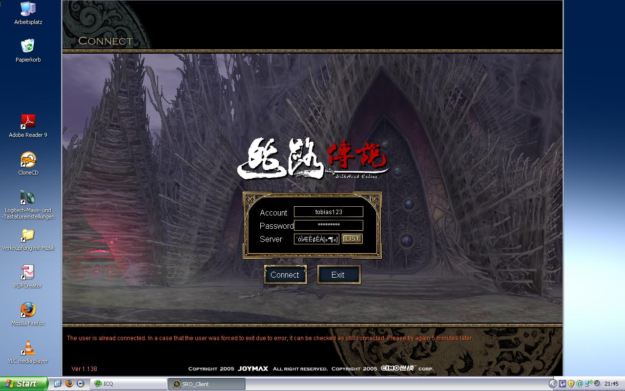 Der sagt mir User is allready connected ... WAS er aber nicht ist ! Das regt mich doch schon wieder auf >.<