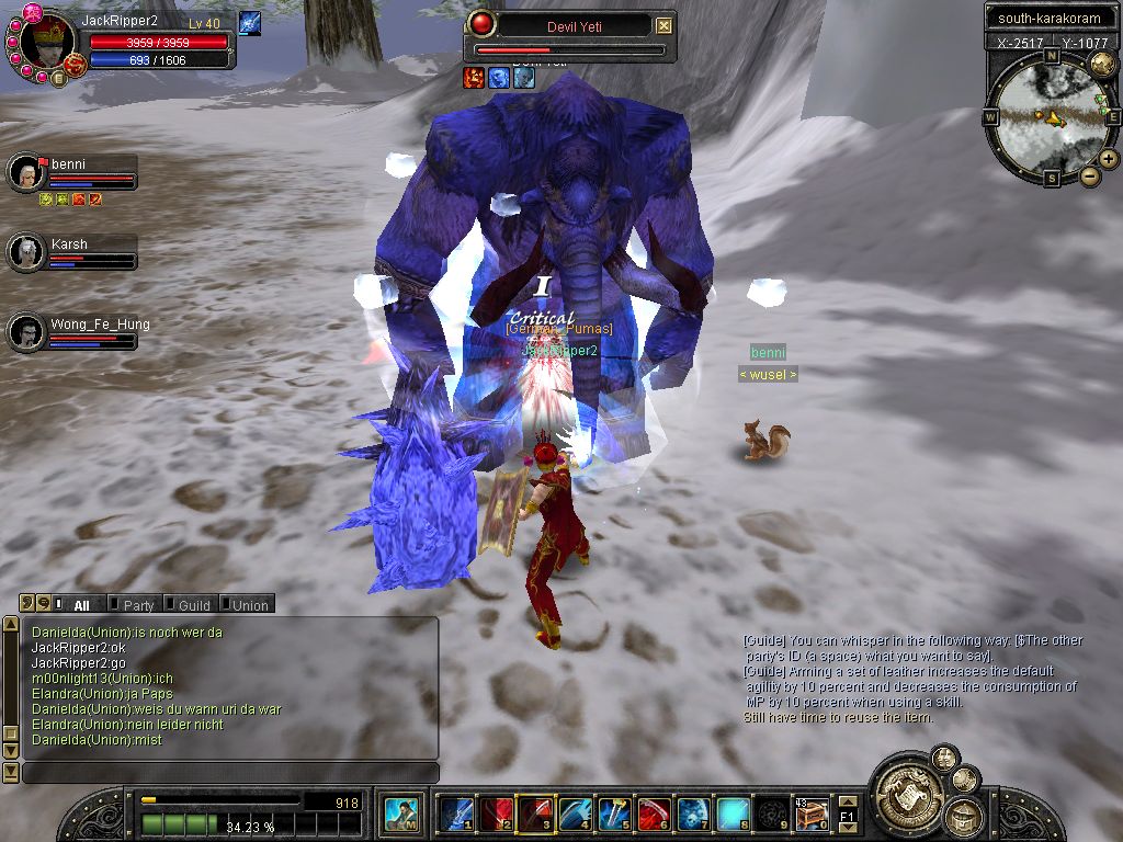 War zwar schwierig den Weg zu finden und auf Idee, die Minimap zu benutzen, bin ich auch nicht gekommen, weils zu stressig war. Auf dem Weg bin ich einigen interessanten Leuten begegnet (Plus ist mir entgegengekommen). Habs dann bis zu den Nachals überlebt und einen geschafft, aber nur knapp: eine Attacke hat mir fast 6000 HP abgezogen (zumindest die Leiste war ganz weit unten). Hab dann sogar ein rotes Kistchen und ein bisschen Alchemyzeugs gefunden, Level 64 female Armor