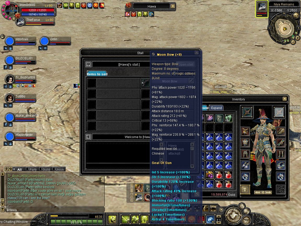 with this you will have to inform us of which armor type you would like; Armor, Protector or Garment. Also which of the weapons you would like; Sword/Blade and Shield, Glaive, Spear or Bow. All Items will have Seal of Sun and will all have +9. Also they will have Full blue stats.