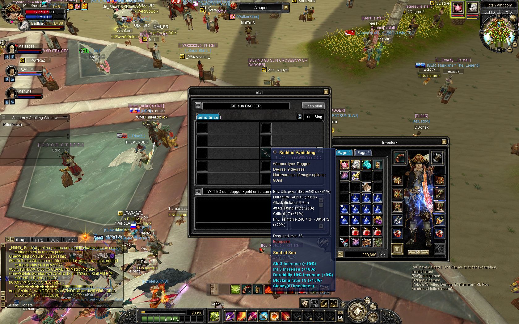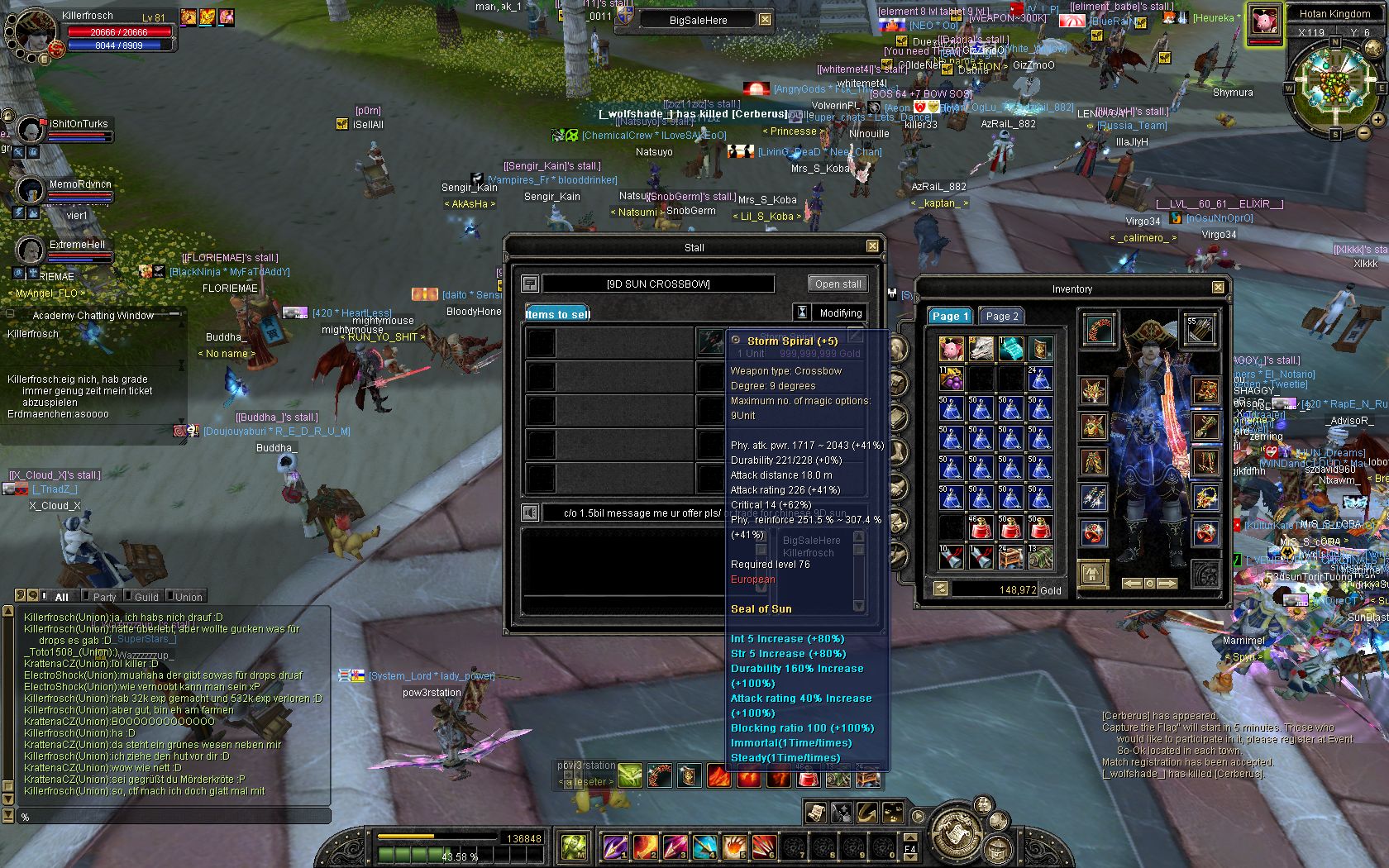 Kam mir halt wie ne Ausrede vor, hab aber nicht gedacht er bottet, interessiert mich eig auch nicht o.ODas ist mir auch schon klar ^^, nur kam es mir halt wie ne Ausrede vor, .. und nein, ich legs nicht erst ins Pet, sonders aufn 2nd Acc oder Guildstore ;DWozu soll man auch einen Drop im Inventar haben,wenn man es selbst nicht benutzt?