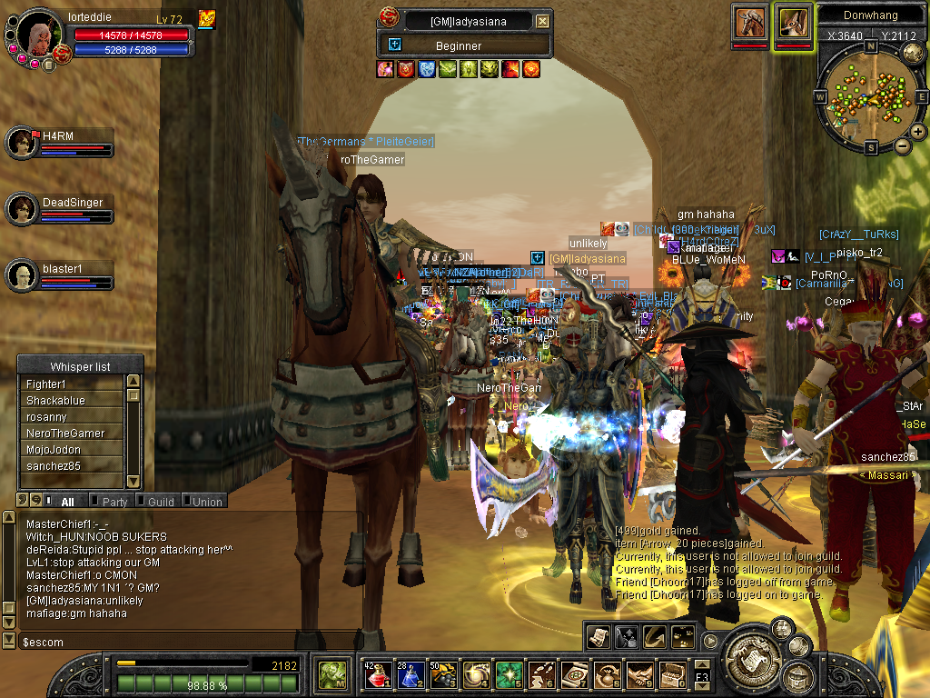 As we have posted yesterday, we have blocked GM impersonators with special characters such as [GM] included in their IDs. Please remember that GMs will never ask for any user information, so do not give out your personal information to anyone in game.