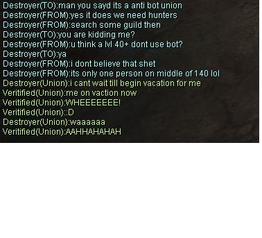 Auf Persia gibt es ne Gilde namens Da_Killaz und sie sind häftigs Botter feindlich ^__^ und ob sie jetzt ne Union haben weiß ich nimma, weil ich schon lang nicht mehr ON war...