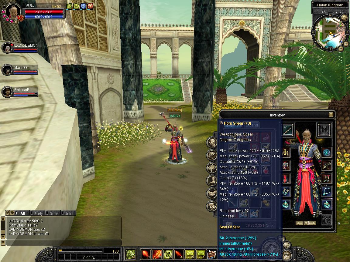 Mein Char auf cSRO. Isn INT-Hybrid Warlock/Cleric/Warrior. Ich werd wahrscheinlich Warlock 100, Cleric 90 und Warrior 10 machen.