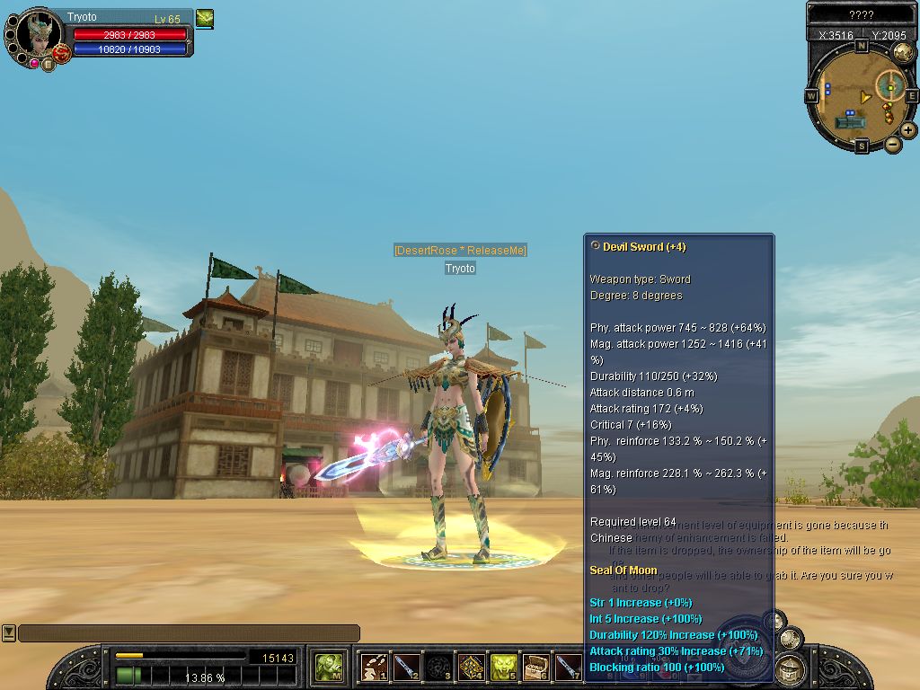 Skills : 90 Spear 90 Fire 70 Ice 50 Light