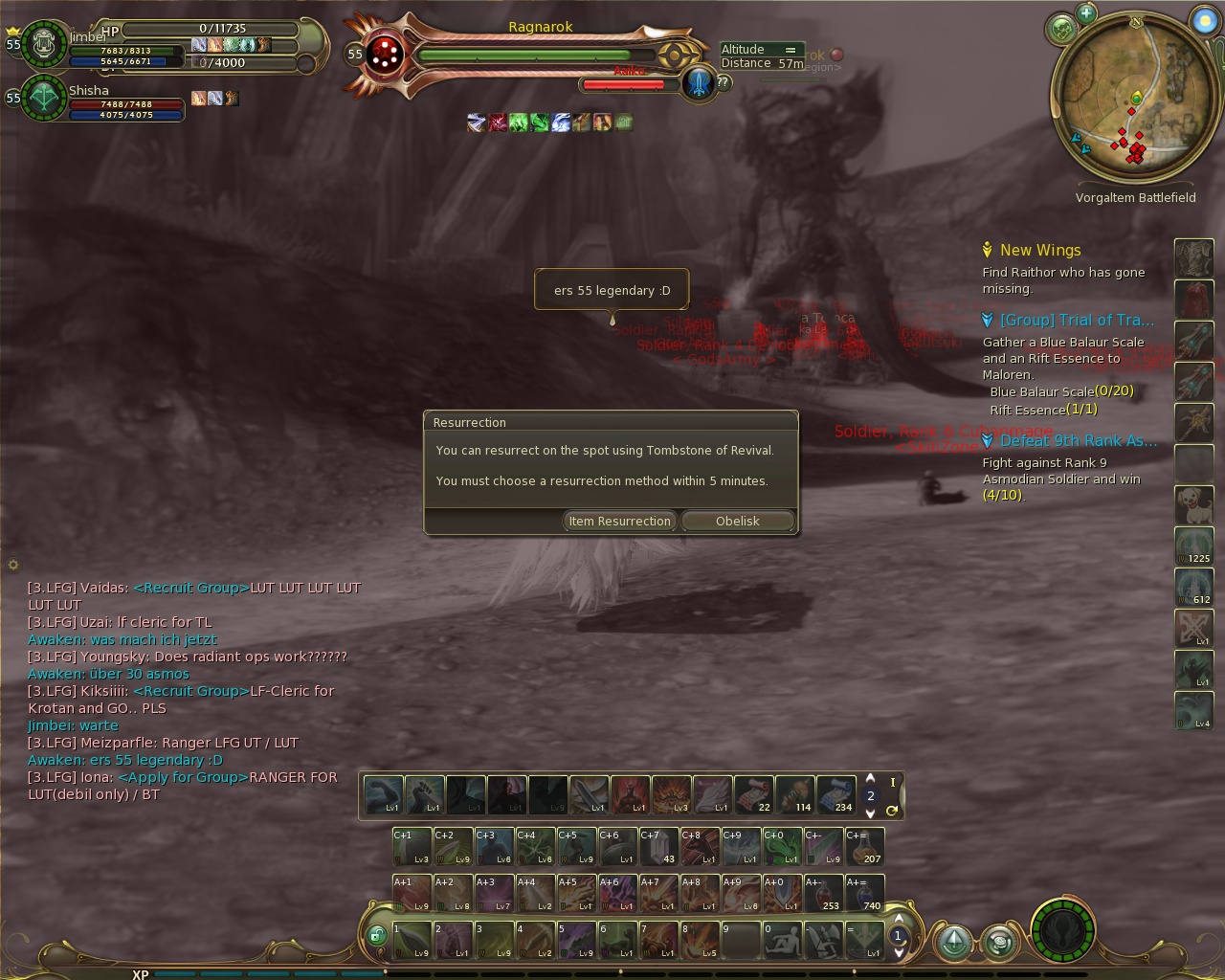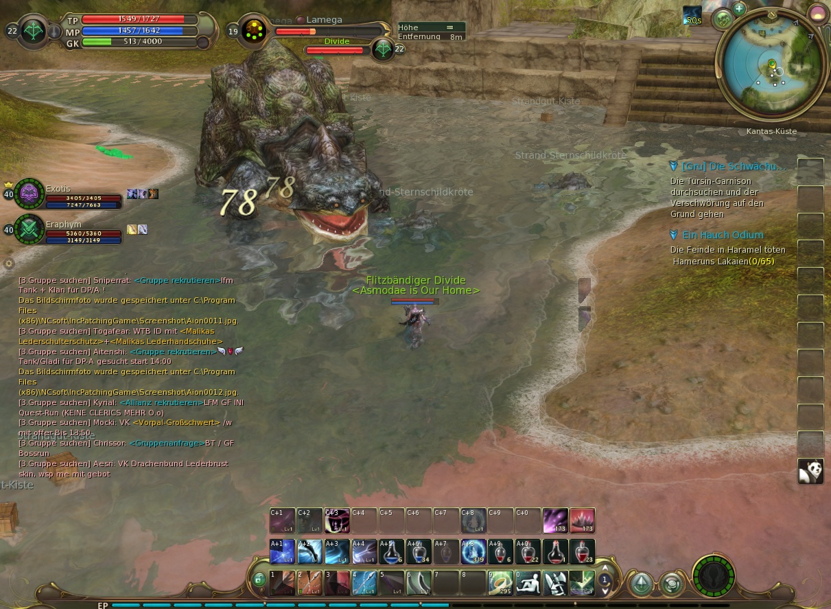 Joah, wollten zu 3. in Gelkmaros Asmos hunten, haben alle aufm Weg gekillt, danach aber waren wir nicht vorsichtig genug und haben die Asmos beim Killen von Ragnarok (55 Legendary) getroffen, eher unpassend und sofort 30-50 Asmos auf uns. :D