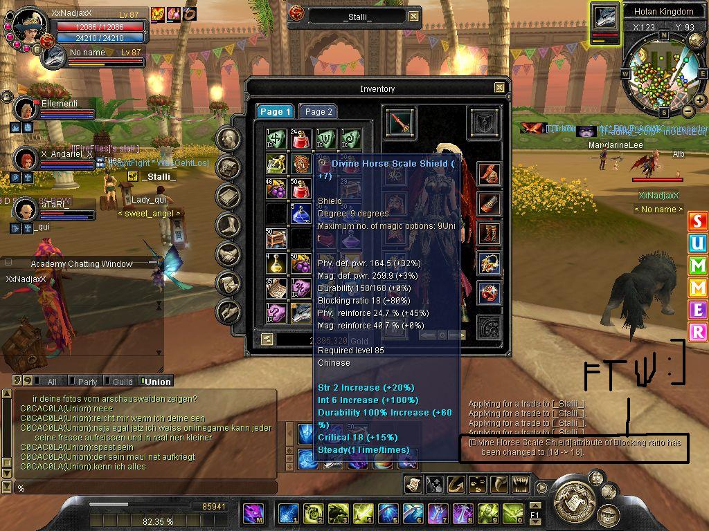 ARgh, 590m is echt übel. Auf Xian hätteste für das Geld eine der zwei +9 sun glavies bekommen. Halt, eine +9 Glavie wurde zerstört...GRML