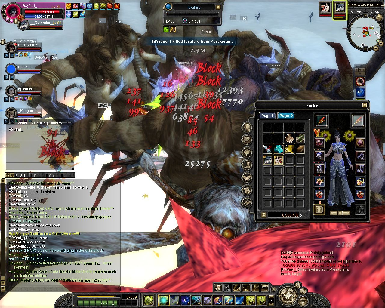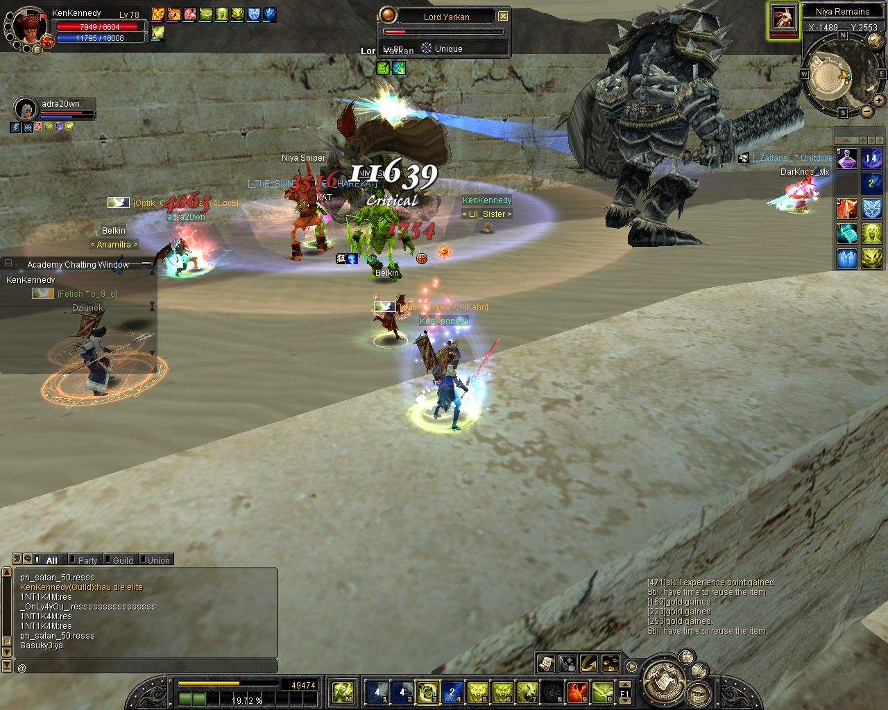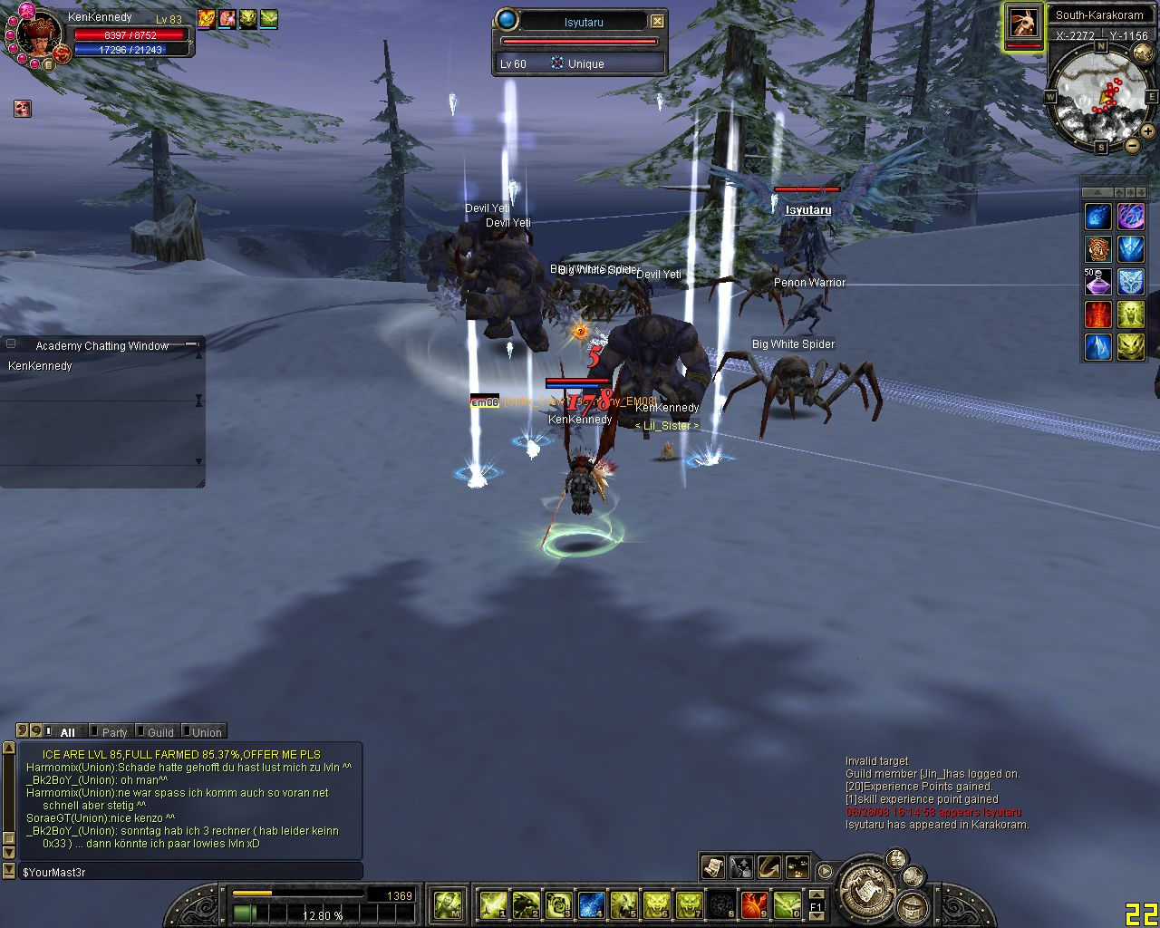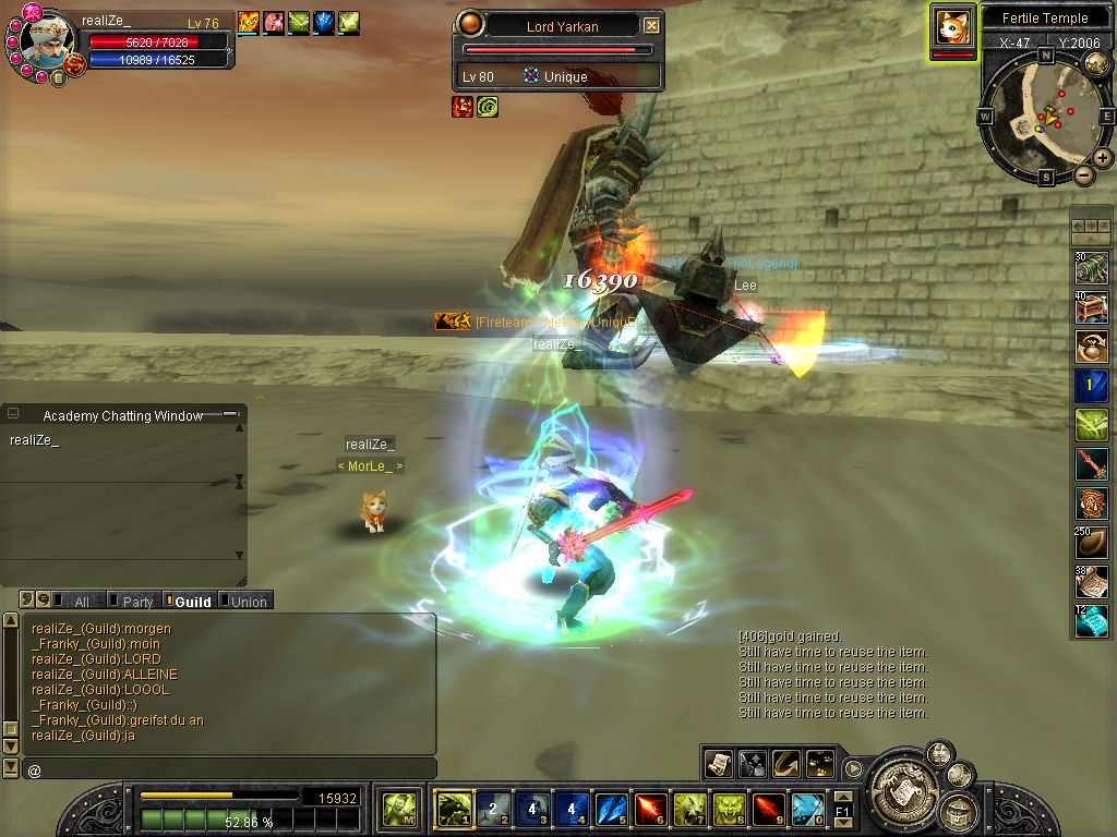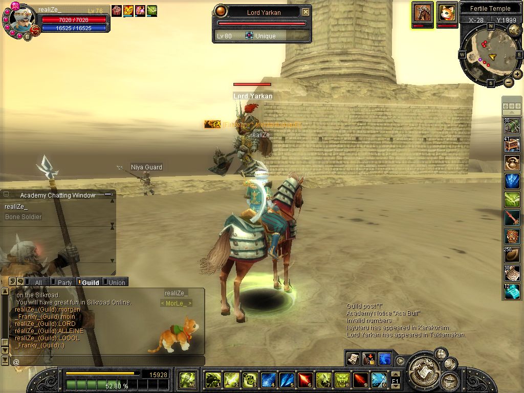 ich komm on und reit zum lvl platz aufeinmal spawnt isy.. hmm war ich grad vorbei bei karakoram ><... Weitergelaufen und aufeinmal spawnt Yarkan.. ich: hoffentlich net Tempel... ich lauf ein stückchen aufeinmal bekomm ich nen kurzen lagg (bei unqieus bei mir immer so^^) und er steht alleine vor mir :P wollte luren damit ich ihn in einer arbeit von etwa 3 stunden (ja shit mein ticket xD) alleine killen kann (zu den Devil eyes z.b) aber dann kam Glavier und dann wurde es nixmehr :P