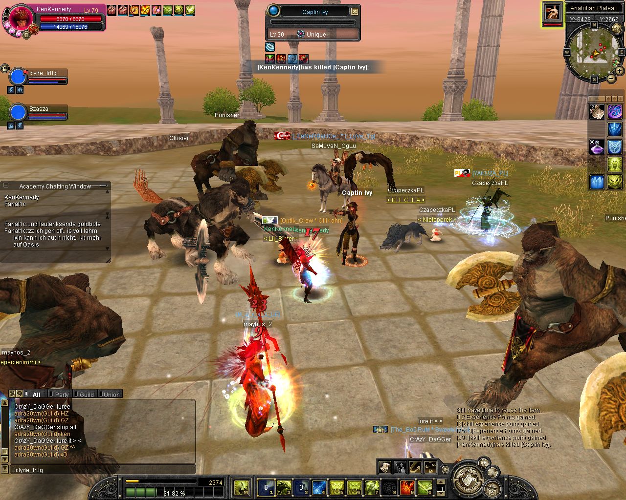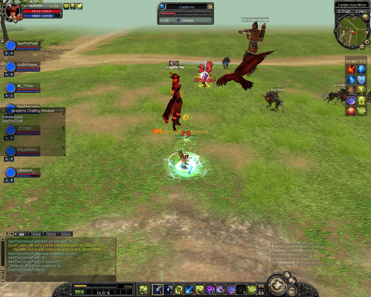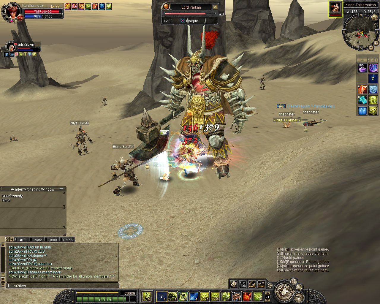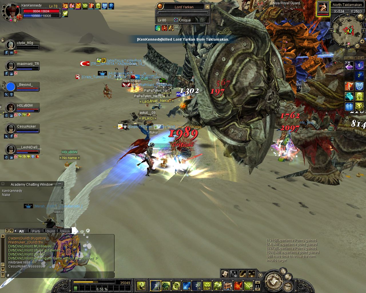 ich komm on und reit zum lvl platz aufeinmal spawnt isy.. hmm war ich grad vorbei bei karakoram ><... Weitergelaufen und aufeinmal spawnt Yarkan.. ich: hoffentlich net Tempel... ich lauf ein stückchen aufeinmal bekomm ich nen kurzen lagg (bei unqieus bei mir immer so^^) und er steht alleine vor mir :P wollte luren damit ich ihn in einer arbeit von etwa 3 stunden (ja shit mein ticket xD) alleine killen kann (zu den Devil eyes z.b) aber dann kam Glavier und dann wurde es nixmehr :P