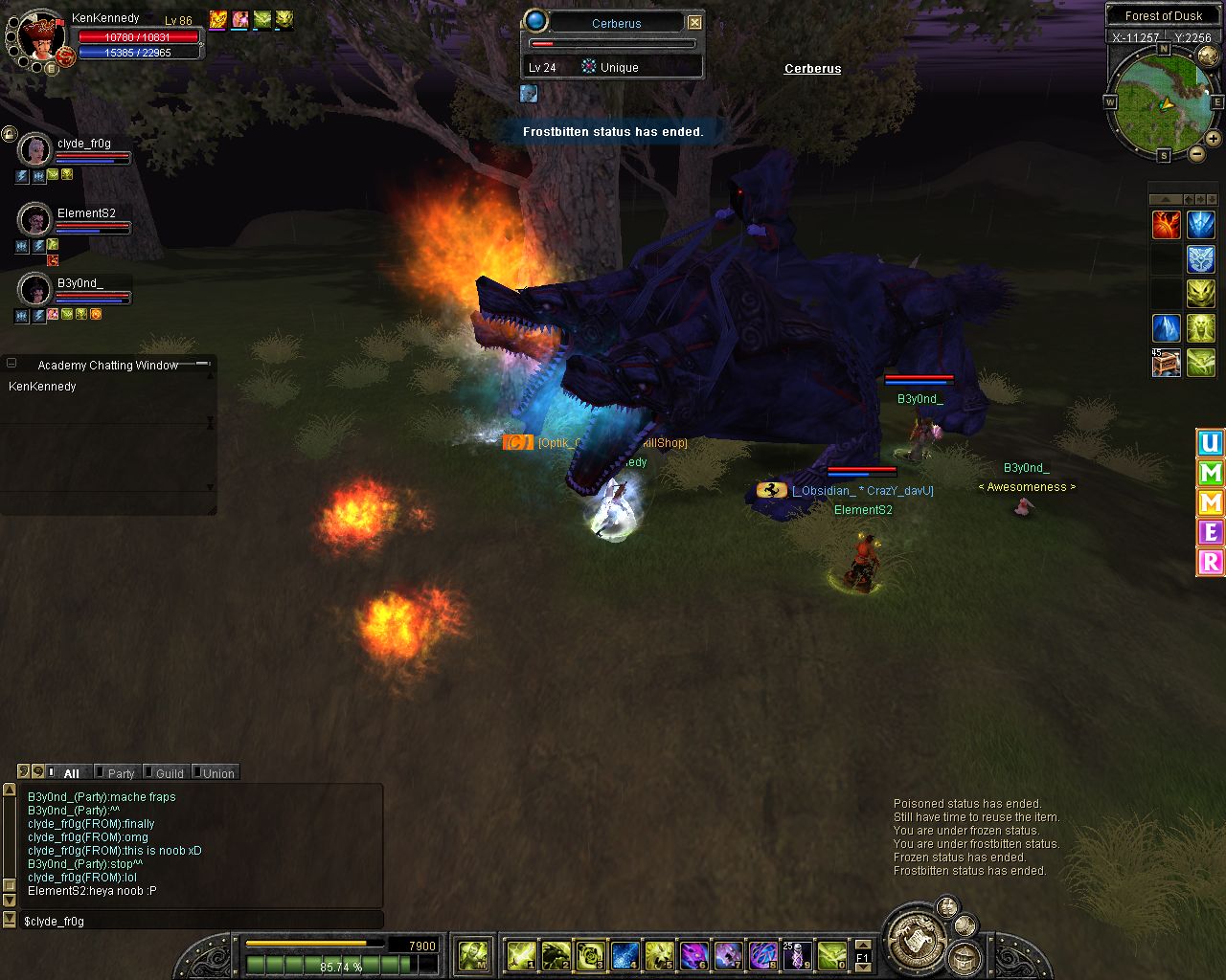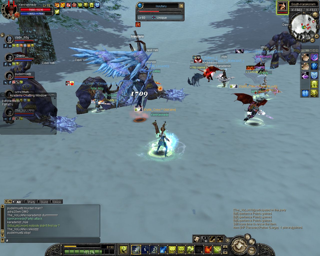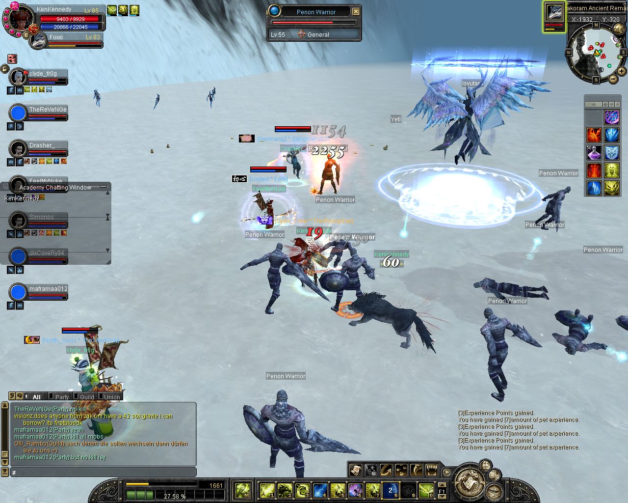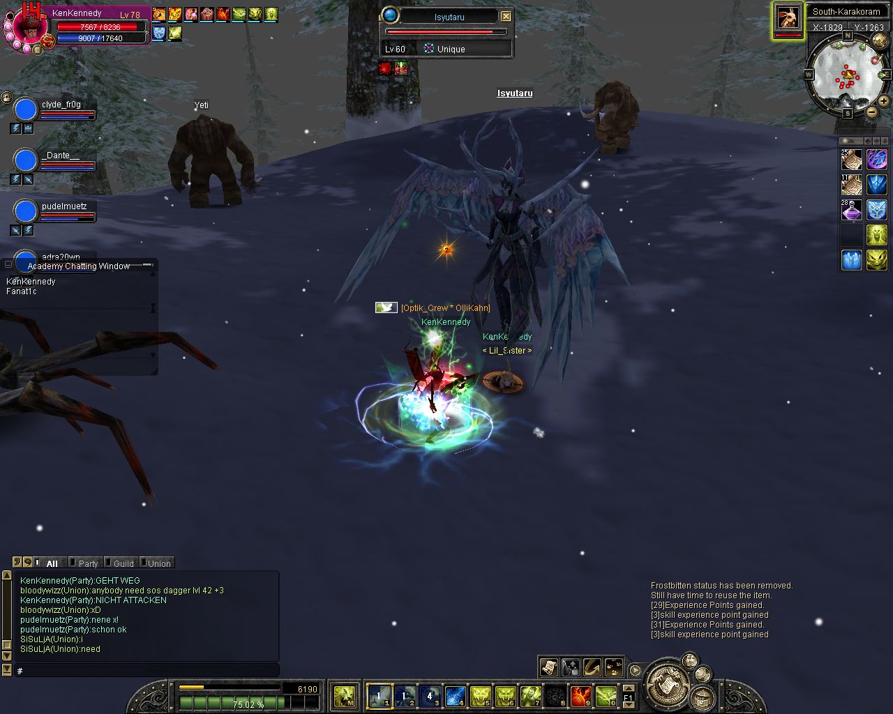 hab bissl mit dem glavier drauf rumgebolzt bis dann paar andre pts kamen. Hab bis etwa 25%HP mitgebolzt, danach konnte ich mein SnowShield nichmehr halten, weil mich 2 Niya Guard Giants attackiert haben und dadurch meine MP bei dauer-0 waren und dann war ich tod ^___^