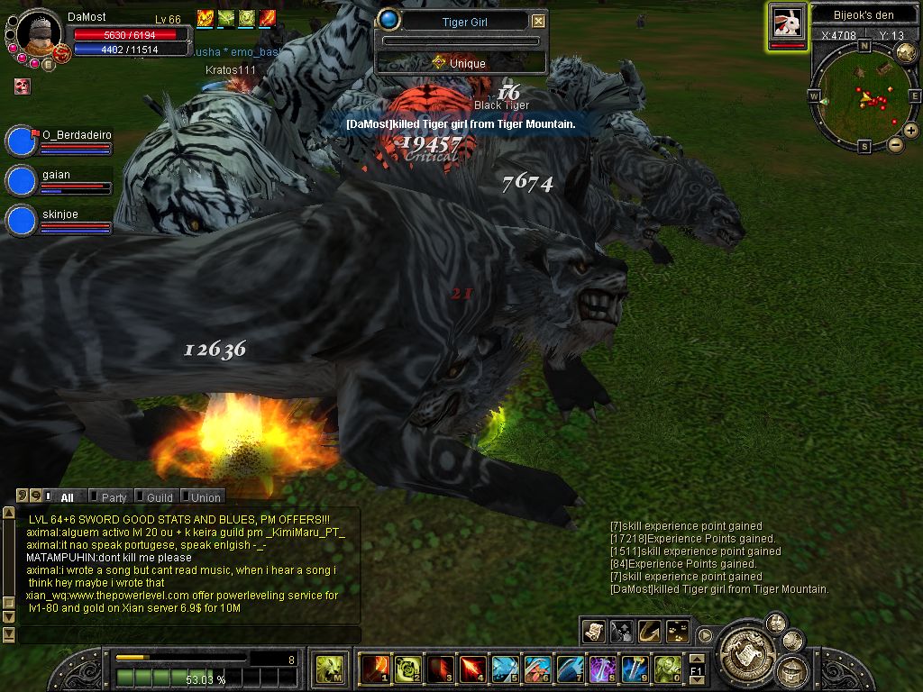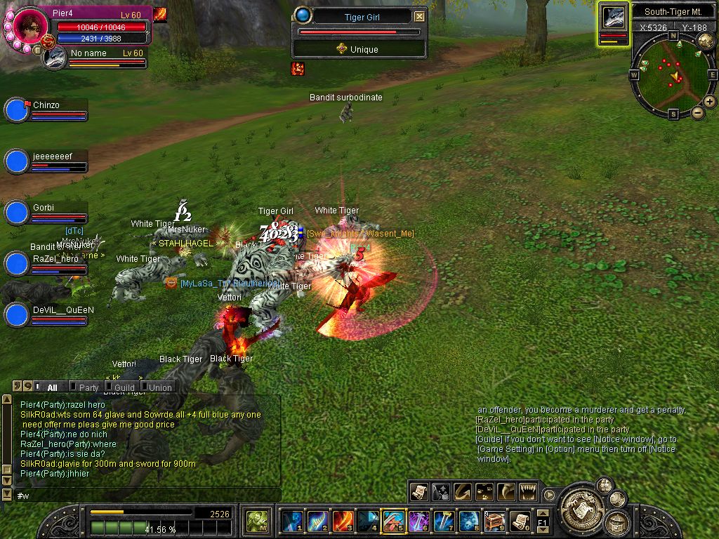Hehe, gestern hab ich noch geschrieben dass ich es nie schaffe sie zu killen und jetzt am nächsten Tag.. Naja das war so .Ich dachte wartest du mal da wo sie immer ist ne halbe stunde gewartet und Tigergirl has appeared on Tiger Mountain. LoL mein Puls war so schnell wie nie. Egal neben mir ritt ein 45+ und übersah TG links neben Stronghold. Ich gehe ganz alleine hin mache 3 Arrow Combo und immer wieder dannach hatte ich se weit weg und dann hat es wahrscheinlich 5 min gedauert bis...