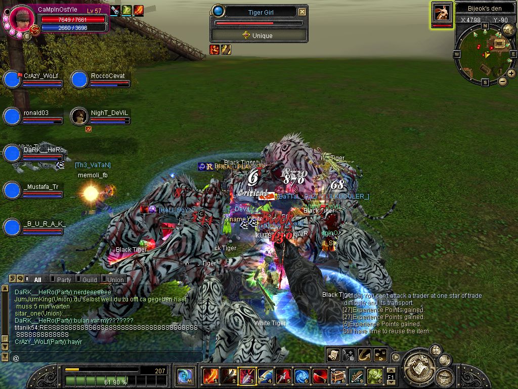 Ich jage Tigergirl schon seit lv 30 und schaffe es immernoch nicht, weil immer so blöder High Lvler Nuker kommen! ;( Die sollen lieber Isyutaru oder Lord Yarkan töten. Mittlerweile mache ich bei ihr über 10.000 Schaden da ich jetzt gestern den 13.4 lv 51 geworden bin. Naja wie gesagt ich werde es nie schaffen... ;(