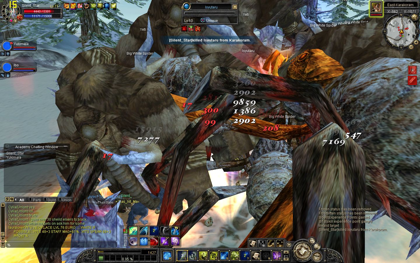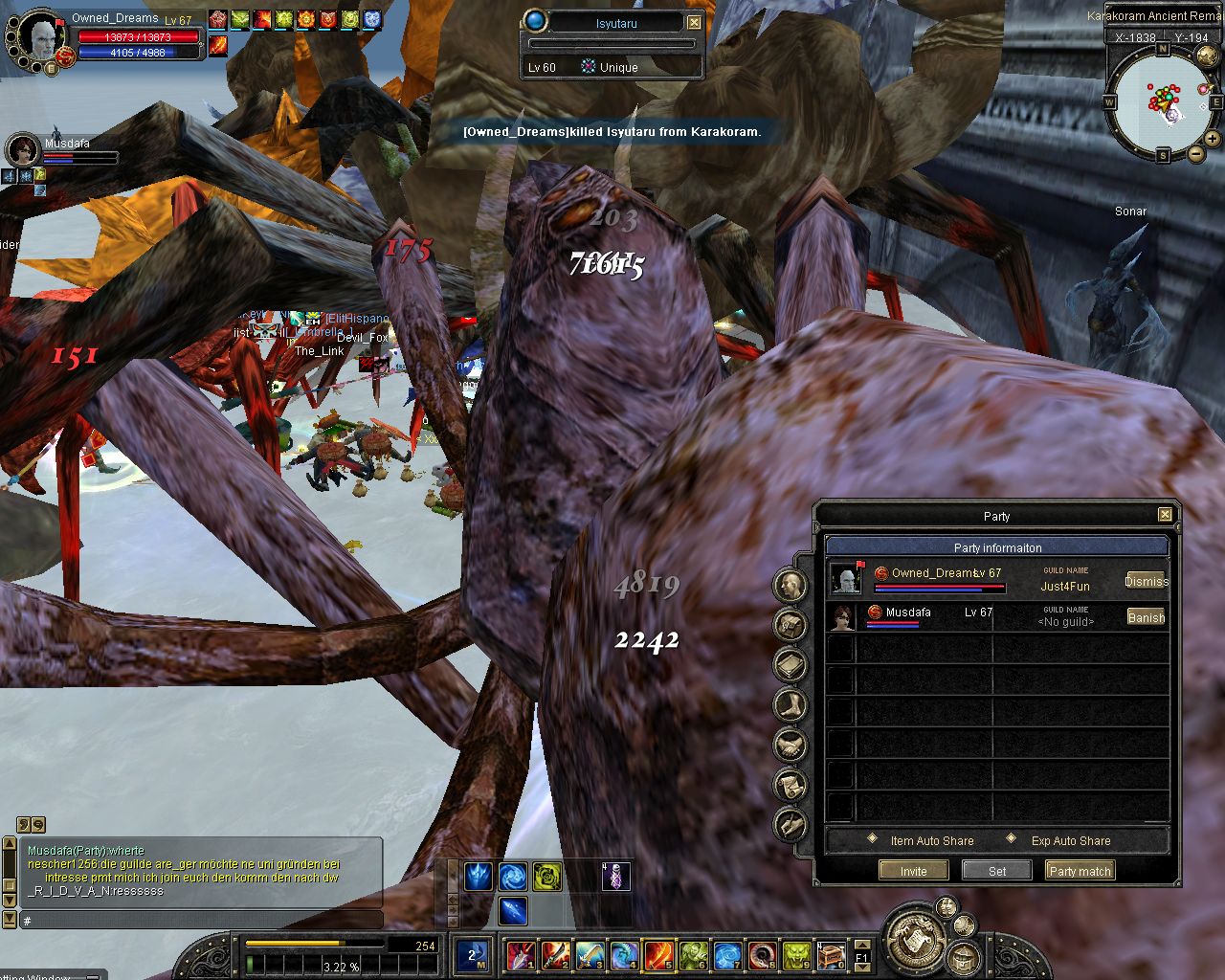 Der Nuker war 77Samstag morgen allein gefunden,gelurt und......kill nicht bekommen >.< durch Freeze konnt ich kaum attacken und dann kam 79er nuker aus der party....bin 65 5:1 bow