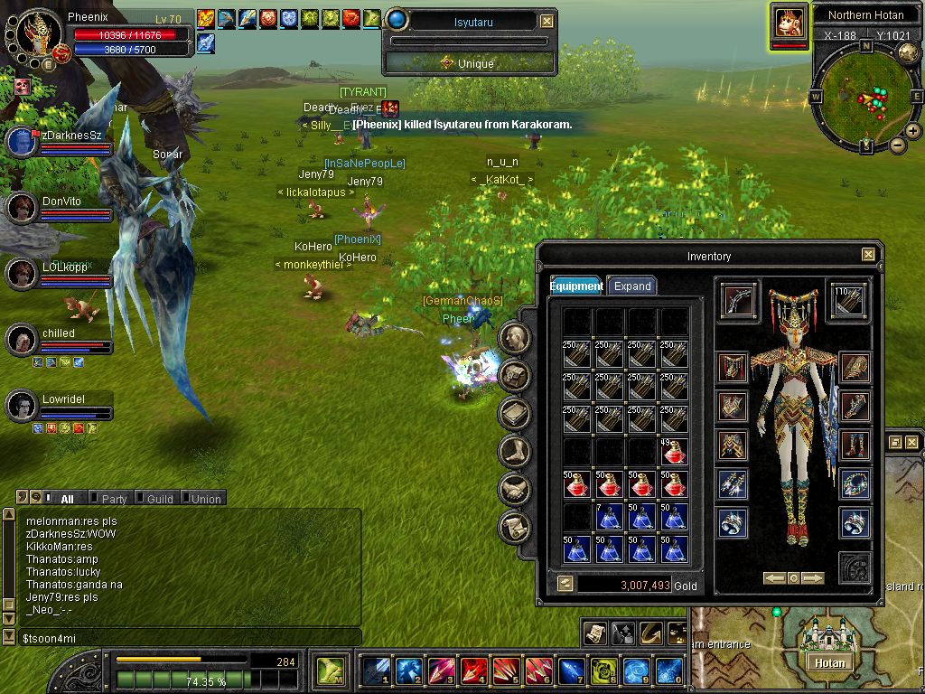 ach und hier hat n blader aus meiner gilde (gerade lvl. up zu 32 geworden 0.01 hatter er) isu attackt und sie hat ihn verfolgt und der depp :x is fast in hotan reingelaufen als ich ihn im ts angeschriehen hab bleich doch stehen sonst is isu weg iser stehen geblieben und sie hat ihn schnell 5k damage gegeben naja lvl down ^^