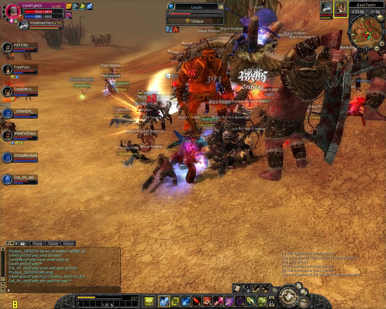 War eigentlich traden aber das wurde langweilig und die Party war eig eine Uru Warte Party... bisschen gewartet und als er dann erschienen ist sind alle rumgewuselt und ich bin oberhalb von der Dead Ravine hingeritten.Bis auf 1 oder 2 andere Spieler war ich da alleine und hab ich halt wieder mit draufgehaut.