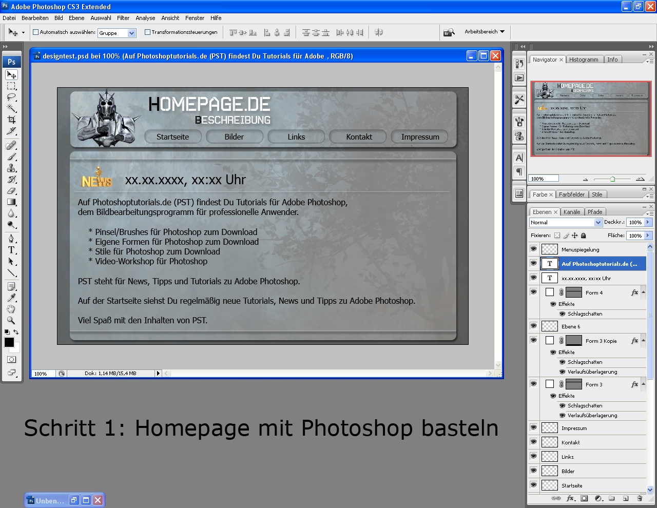 Ich bin gerade dabei, unter anderem, eine Webseite zu machen, mit mir als Thema, weil ich son krasser Typ bin! Ich habe dabei versucht ein Design zu entwickeln, welches meiner Person und meinen Vorstellungen von gutem Design entspricht. Das hat mich nun einiges an Überlegung gekostet. Ich bin noch nicht mit allem zu hundert Prozent zufrieden, aber ich hab erst morgen Abend Zeit weiter zu machen.