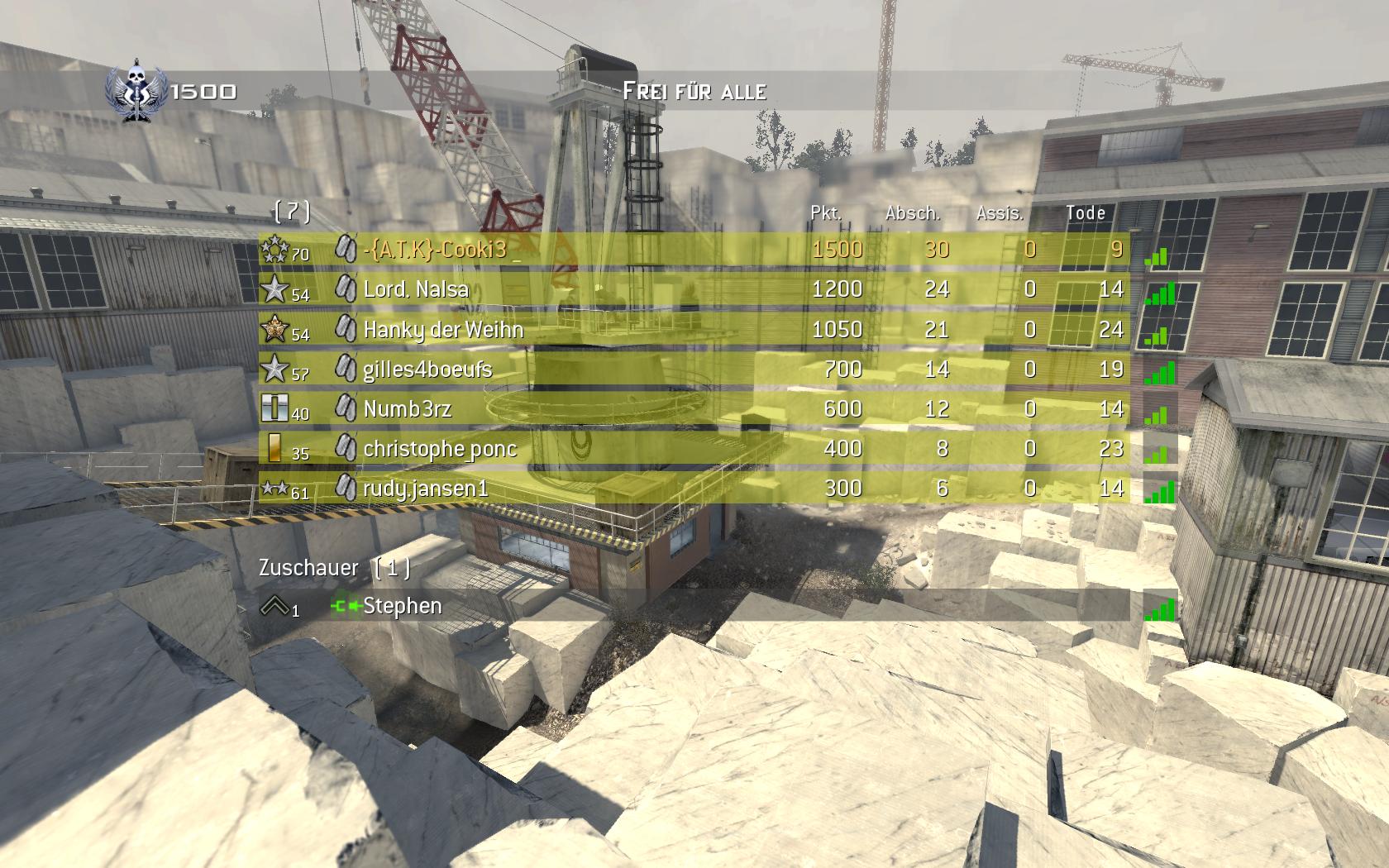 Aber eins muss ich noch sagen, der Singleplayer war Top und der Multiplayer auch, aber NUR auf Konsole. Ich hab MW2 endgültig gekickt, als ich ein Spiel hatte, wo in meinem Team Cheater waren und im Gegnerteam welche. Im Gegnerteam sind sie dann geleavt und in deren Slots kamen.. ratet mal.. cheater? richtig! Das ganze hat sich drei mal wiederholt - dann hatte ich keine Lust mehr.