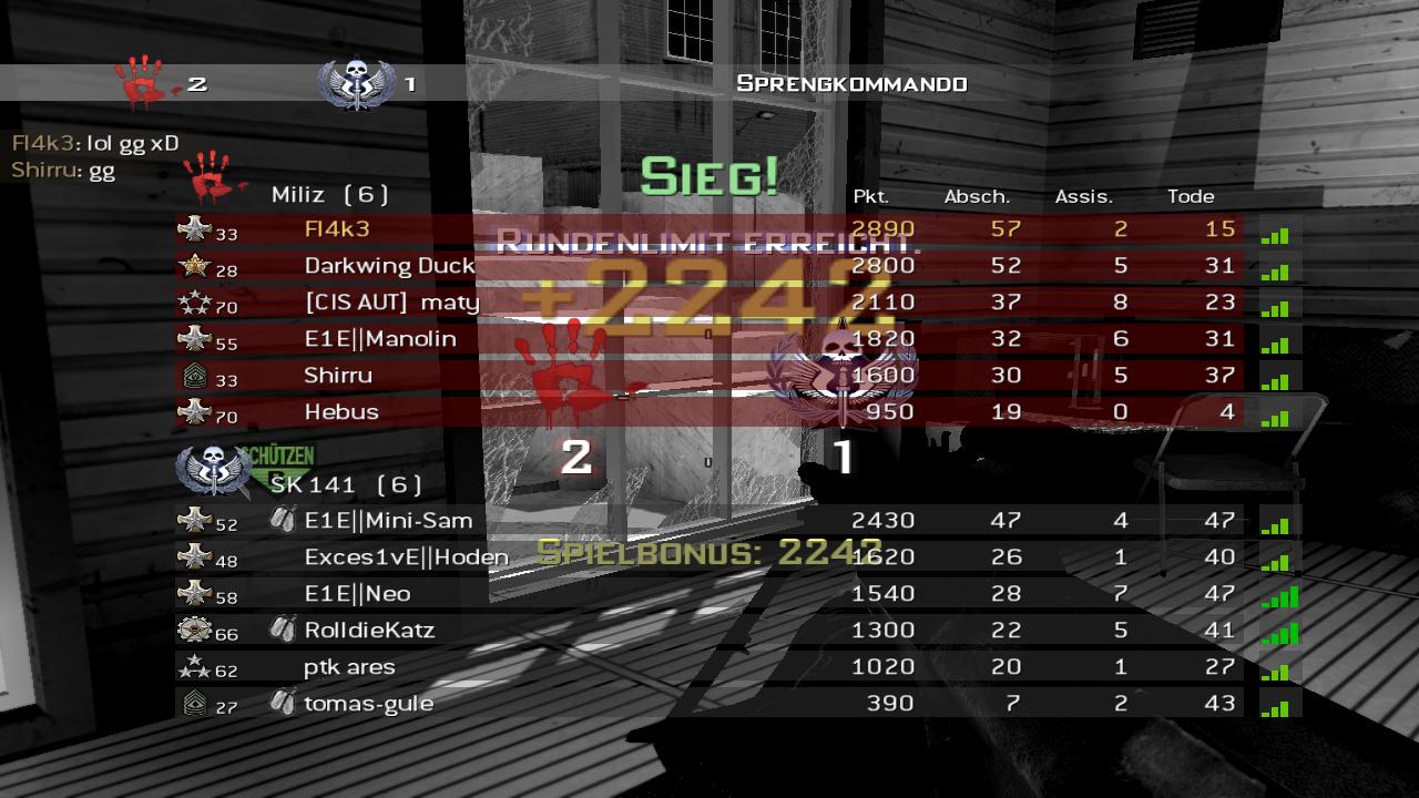 boah -.- extrem unkonzentriert heute scheinbar oO in 4 runden hc tdm 4 eigene leute gekillt oO und nich per explosionsschaden oder so sondern schön abgeknallt :-X is mir noch nie so wirklich passiert -.- :D Wobei bei 2 kills davon muss man sagen dass ich nur ne Waffe irgendwo rausgucken sehen hab und dann durch die Wand geschossen hab.. :D