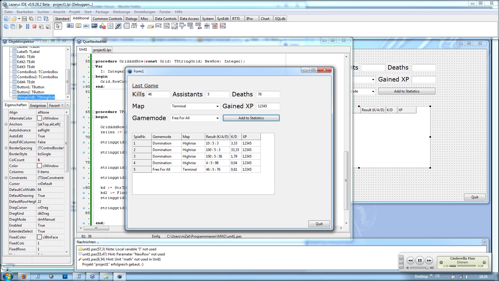 Bin nun dabei so ne Art Statistikprogramm für Ingamestats zu erstellen :D