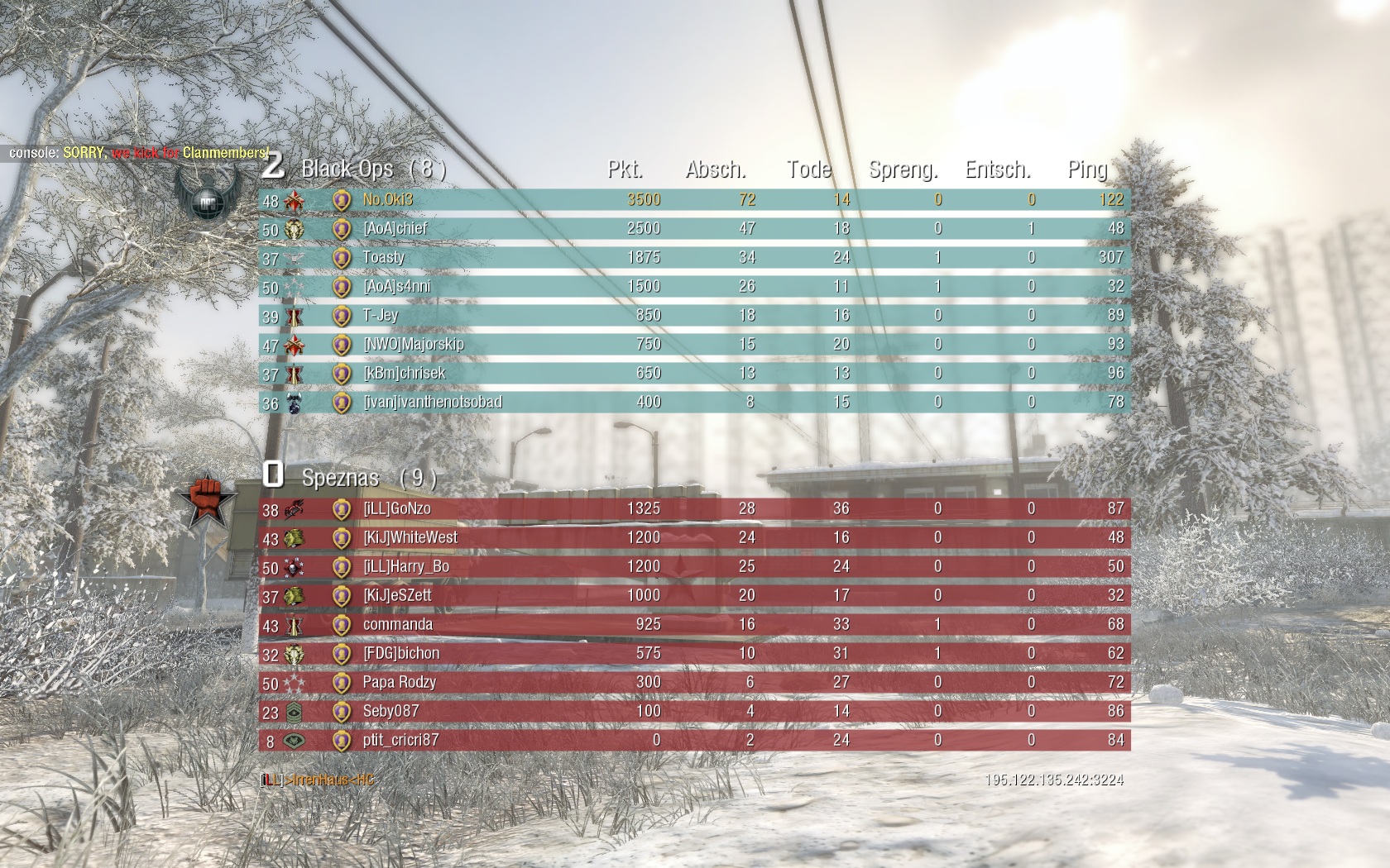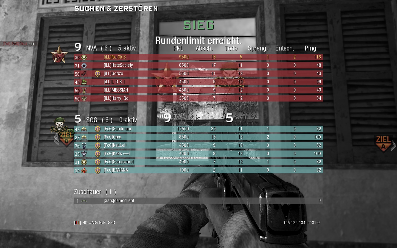 Vorher war er bei 61Kills (19 Deaths) auf Summit, nun bei 84 KIlls (44 Deaths) auf Nuketown :> Die 61 waren in nem Hauptquartierspiel, die 84 in nem Sprengkommando über 3 Runden. Hätten aber locker über 100 sein können wenn ich die Runde in der wir die Bombe legen mussten nicht nur versucht hätte auch wirklich die Bombe zu legen :>