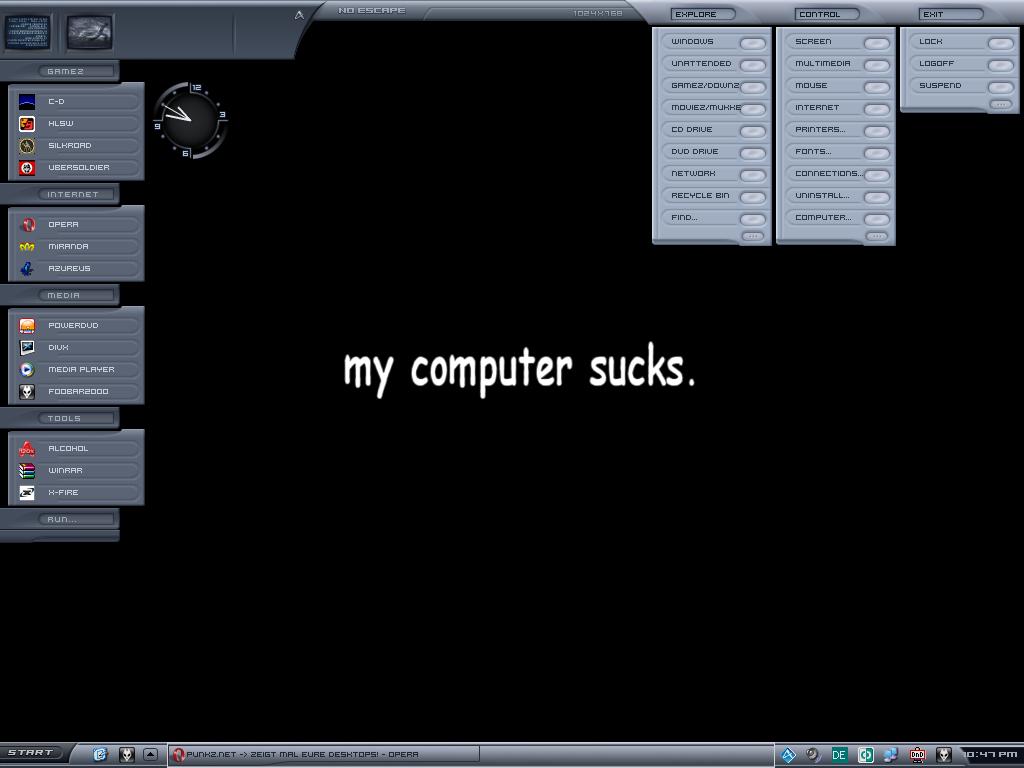 so dann zeige ich mal meinen Desktop auch mal auch wenn da nicht viel zu sehen ist weil meine Desktop Verknüpfungen grundsätzlich ausgeblendet sind
