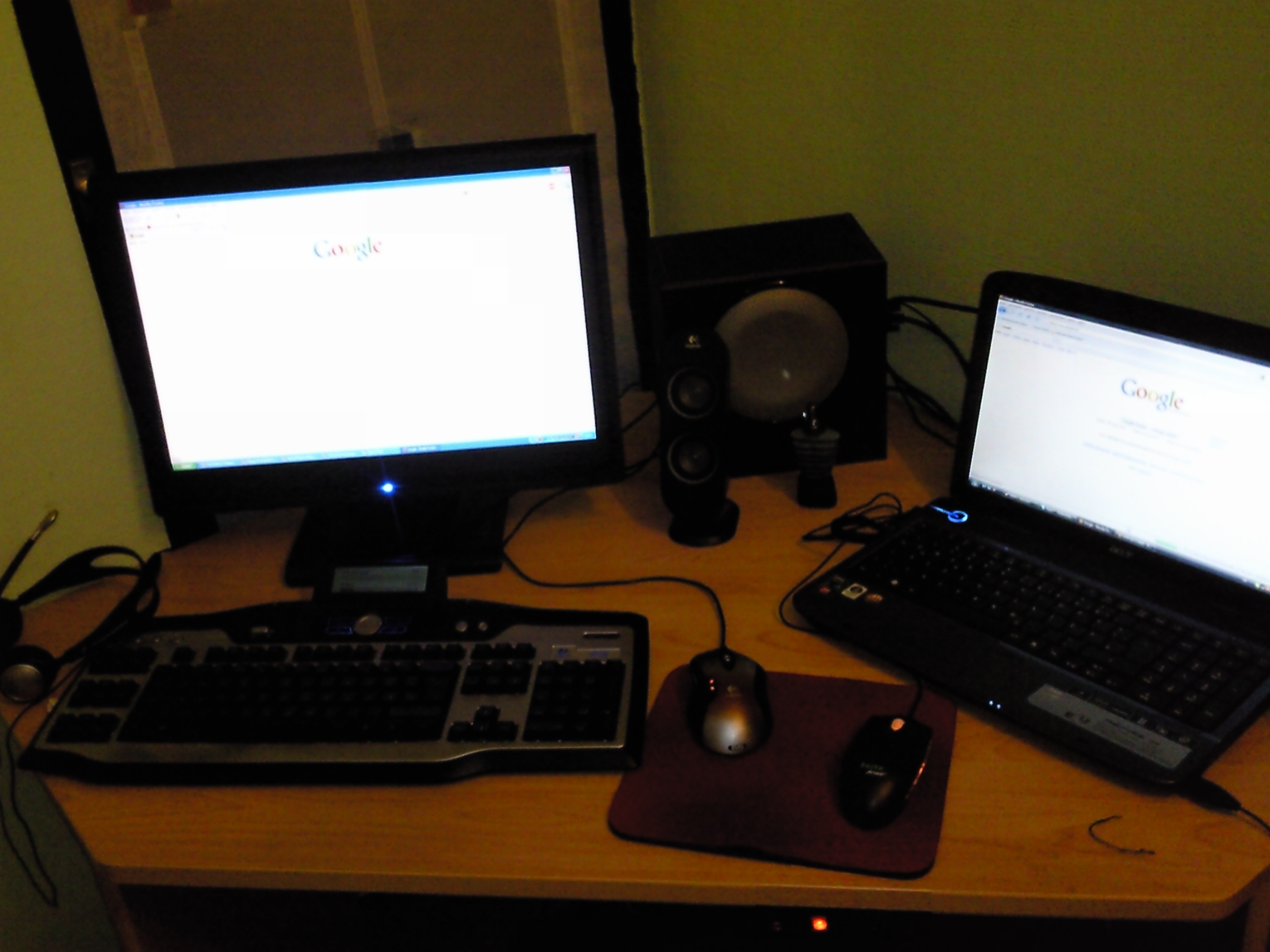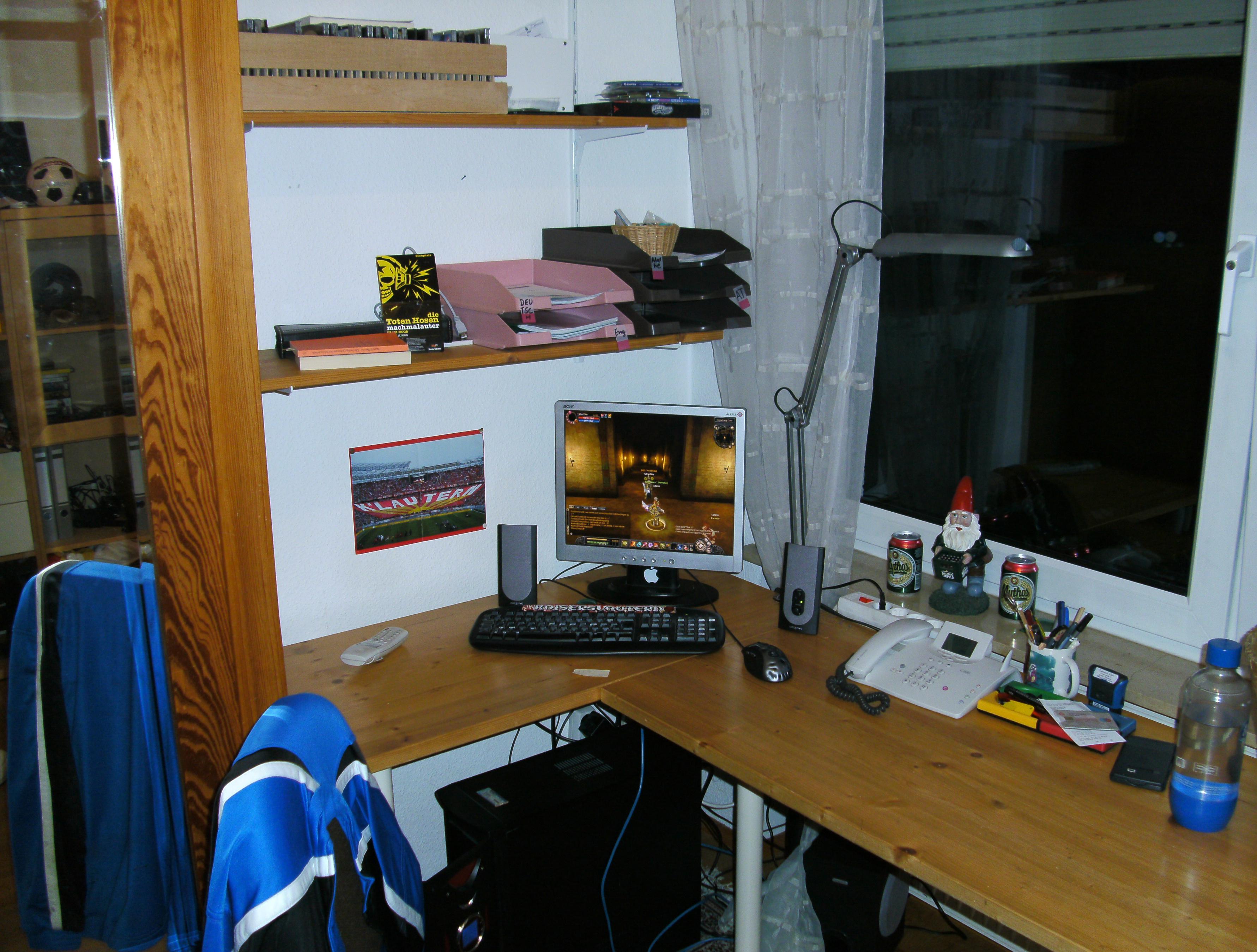 Da schäm ich mich ja irgendwie schon nen Foto von meinem Schreibtisch zu machen und das hier rein zu stellen =/ is ja heftig was ihr fürn Equipment habt...