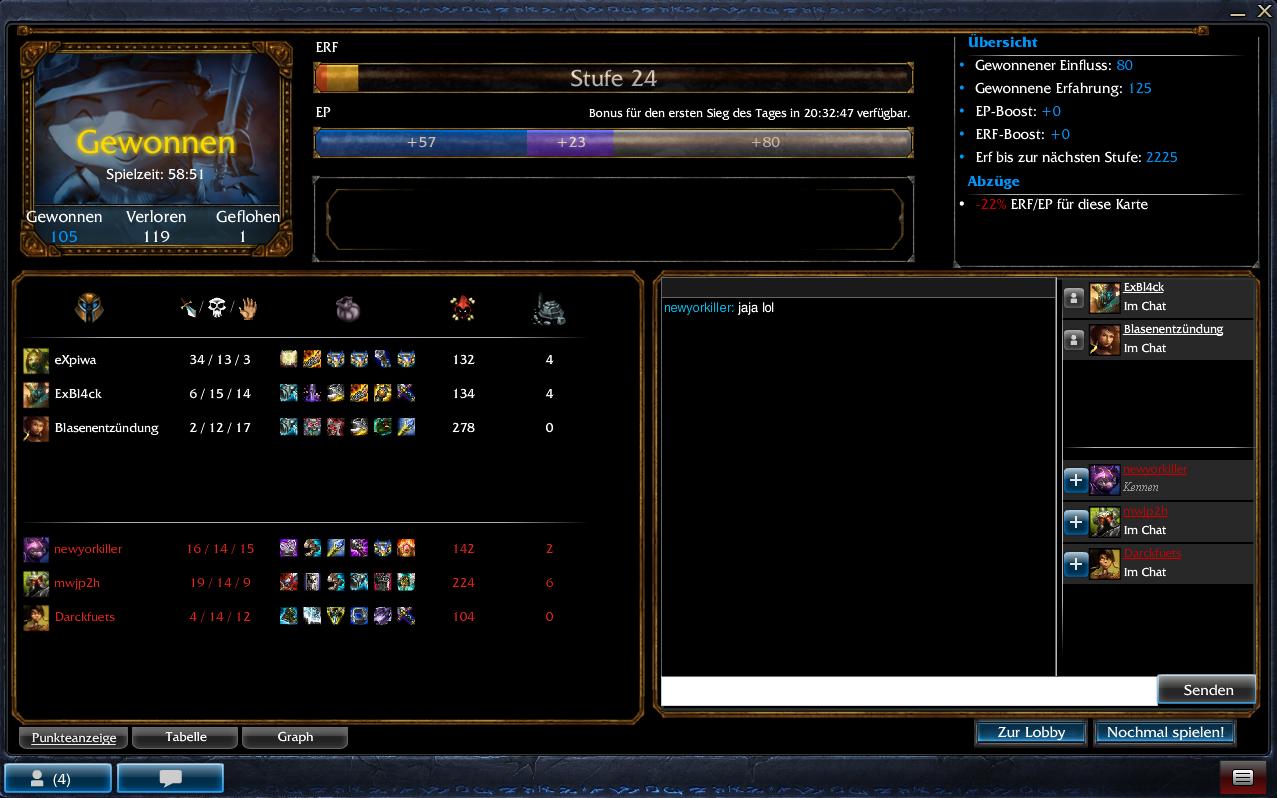 "Schlechte Stats" im Bezug auf "gut Spielen" ist auch son Ding, da kommt mir mein Mittag hoch wenn ich sowas lese. Ich hab auf nem Nasus lieber 2/8/20 stats als 20/8/2, solange mein Team gewinnt interresiert es mich nicht was ich an deaths dafür opfern musste, noch wie oft jemand anders einen Kill bekommen hat. Ich sag jetzt mal bewusst nicht KS dazu, das gehört nicht in meinen Wortschatz wie backdooring....gut.. ich schweif vom Thema ab.