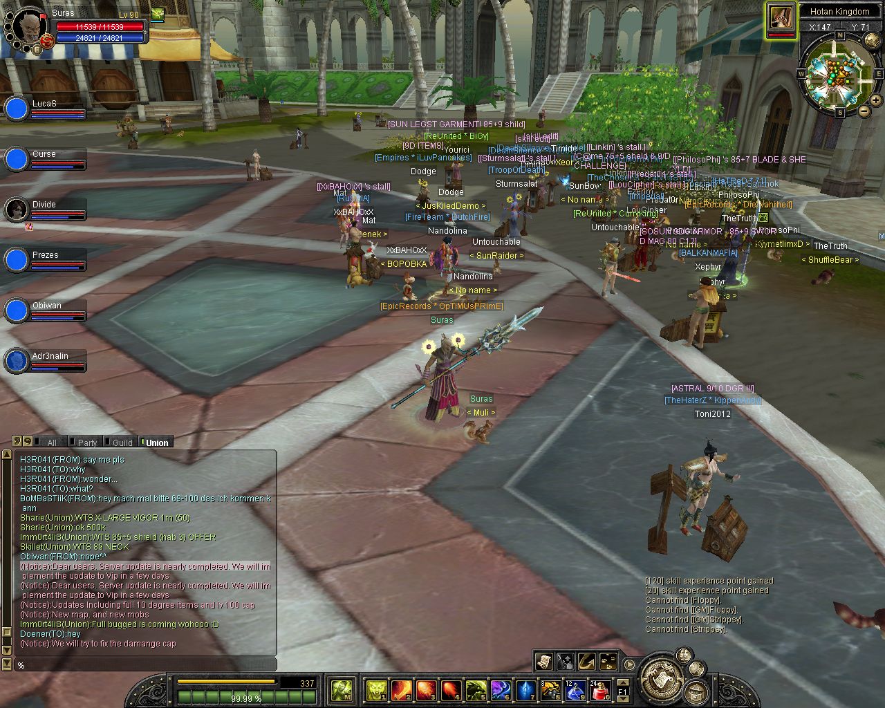 Würde mein Sword Shield Nuker lv 65 Ice 60 Light 60 Fire 19 und Bicheon 42 mit 15K Sp und einen Glavier lv 73 Heuk 71 Fire 71 Light 52 + meines Goldes gegen 90er tauschen