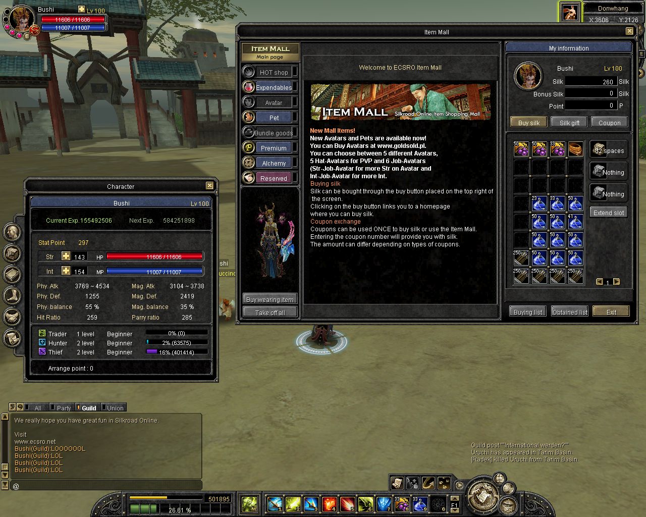 Lieber Besucher, herzlich willkommen bei: Silkroad Online Forum. Falls dies Ihr erster Besuch auf dieser Seite ist, lesen Sie sich bitte die Hilfe durch. Dort wird Ihnen die Bedienung dieser Seite näher erläutert. Darüber hinaus sollten Sie sich registrieren, um alle Funktionen dieser Seite nutzen zu können. Benutzen Sie das Registrierungsformular, um sich zu registrieren oder informieren Sie sich ausführlich über den Registrierungsvorgang. Falls Sie sich bereits zu einem früheren Zeitpunkt registriert haben, können Sie sich hier anmelden.
