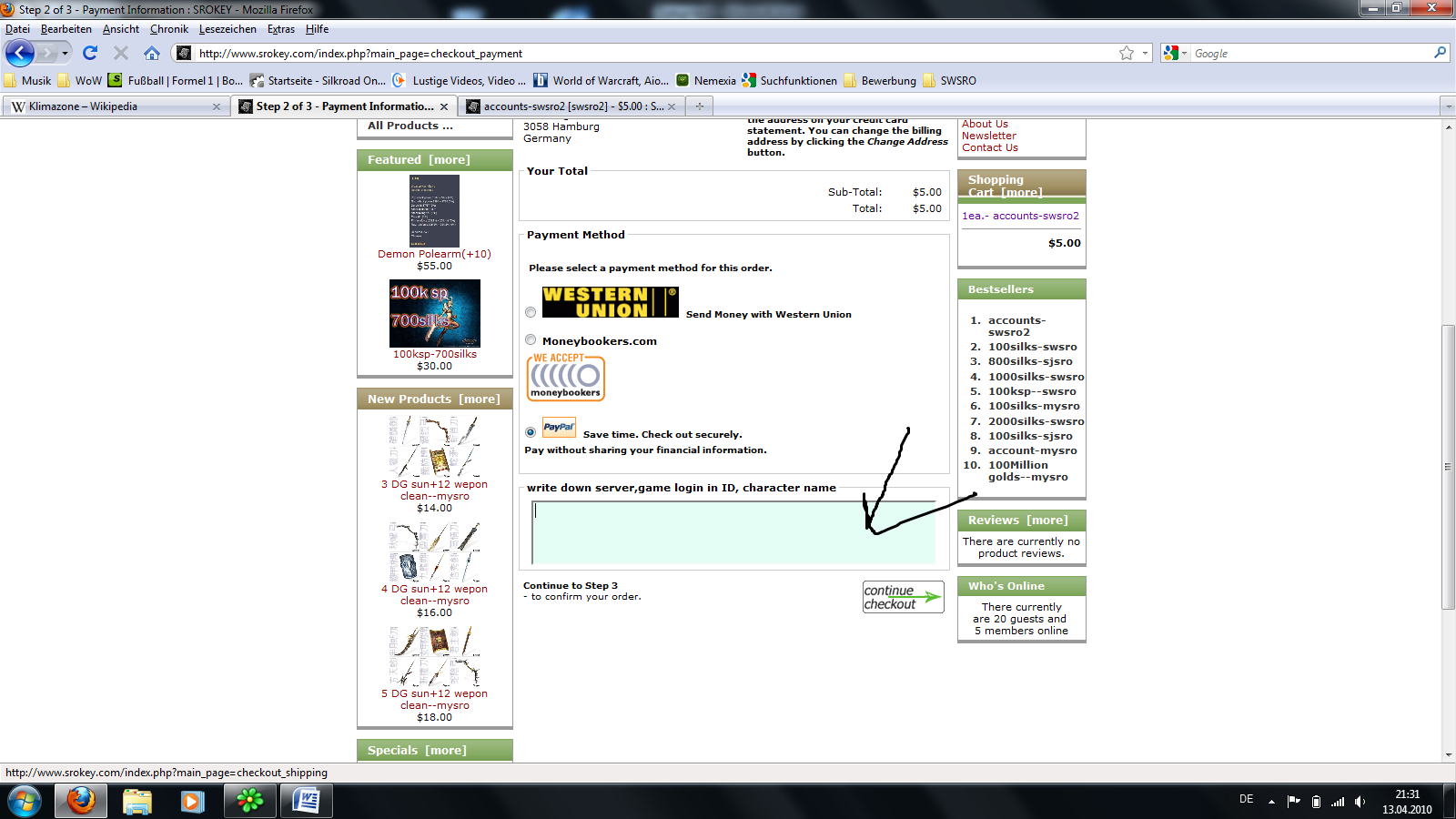 Dann habe ich mich auf der Seite: http://reg2.sro8.com/reg.html mit nem Guide registriert.