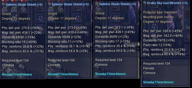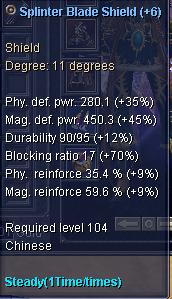 WTT SOS Glavie 11D gegen ein SOS SWORD und nen normales 104+7 Shield. Kann auchn +5 sein, wenn es nen gutes BR hat.
