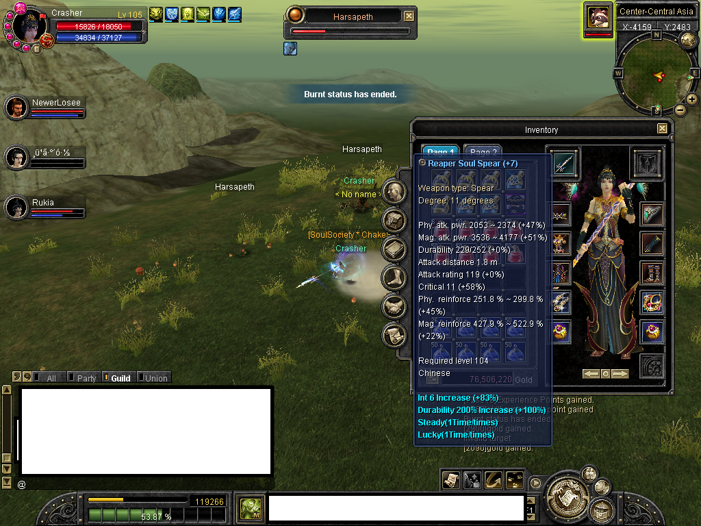 WTT lv104+7 SPEAR FB 60%/41% mag, crit 11 gegen nen lv104+7 SHIELD und ner clock.