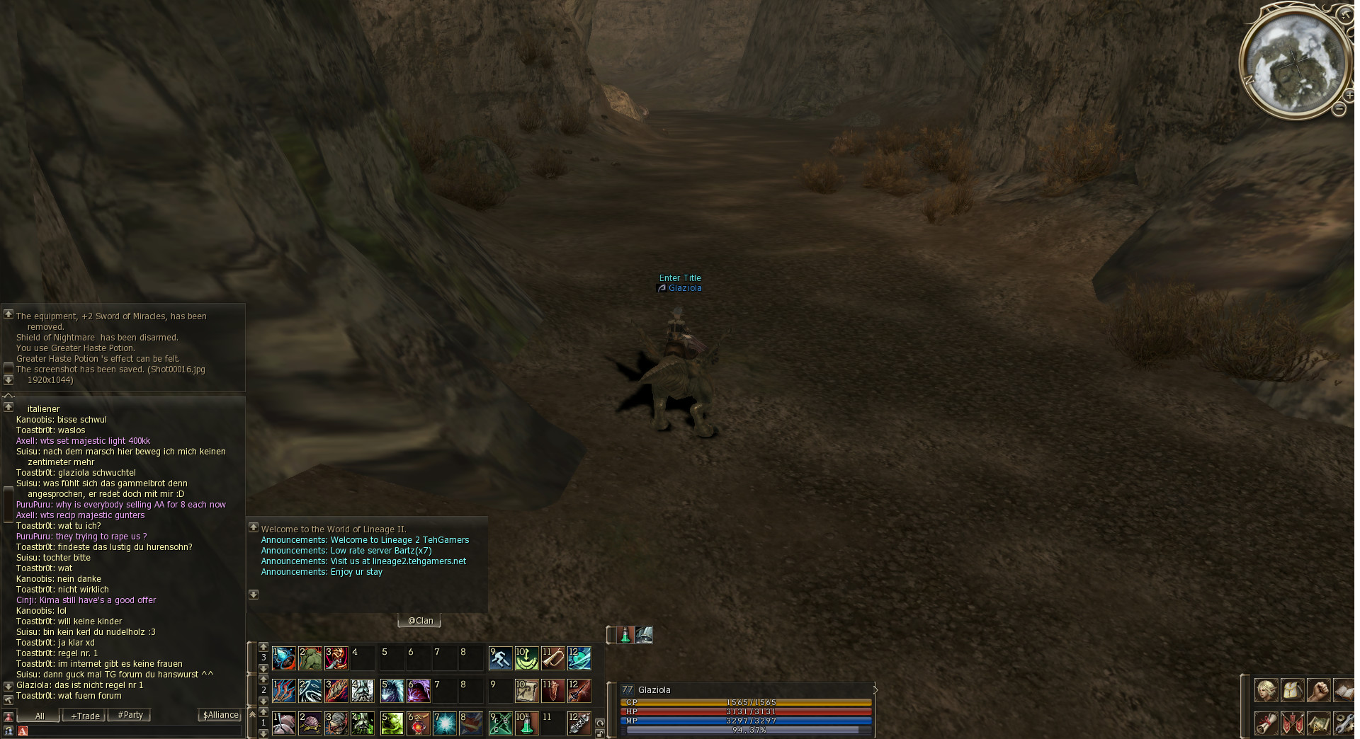 Lieber Besucher, herzlich willkommen bei: Silkroad Online Forum. Falls dies Ihr erster Besuch auf dieser Seite ist, lesen Sie sich bitte die Hilfe durch. Dort wird Ihnen die Bedienung dieser Seite näher erläutert. Darüber hinaus sollten Sie sich registrieren, um alle Funktionen dieser Seite nutzen zu können. Benutzen Sie das Registrierungsformular, um sich zu registrieren oder informieren Sie sich ausführlich über den Registrierungsvorgang. Falls Sie sich bereits zu einem früheren Zeitpunkt registriert haben, können Sie sich hier anmelden.