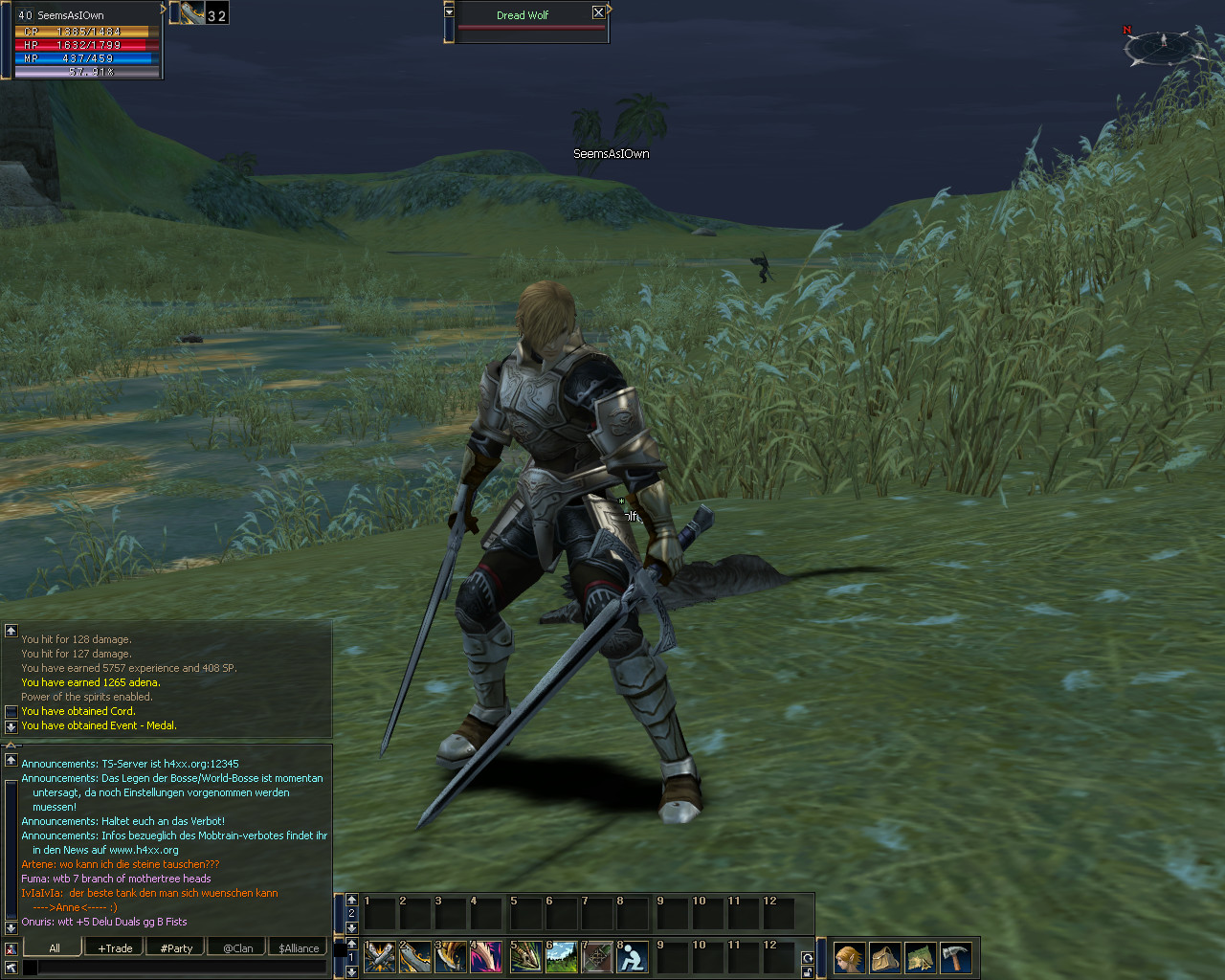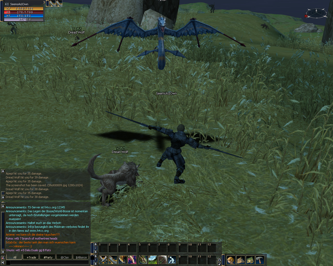 hab vorhin kurz in l2 reingeschaut (nachdem es endlich wieder lief xD), hab kurz ein paar monster geplättet um die skills zu sehen, leider hab ich bei einem "30" monster etwas klitze kleines übersehn (scheiss raid bosse xD) ^^ und das sah dann so aus XD :