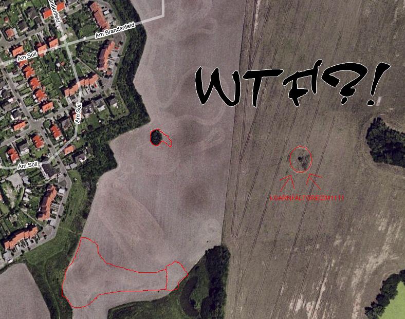 Nur Feld, nichts von den Spuren zu sehen die im Satelliten-Bild zu sehen sind^^
