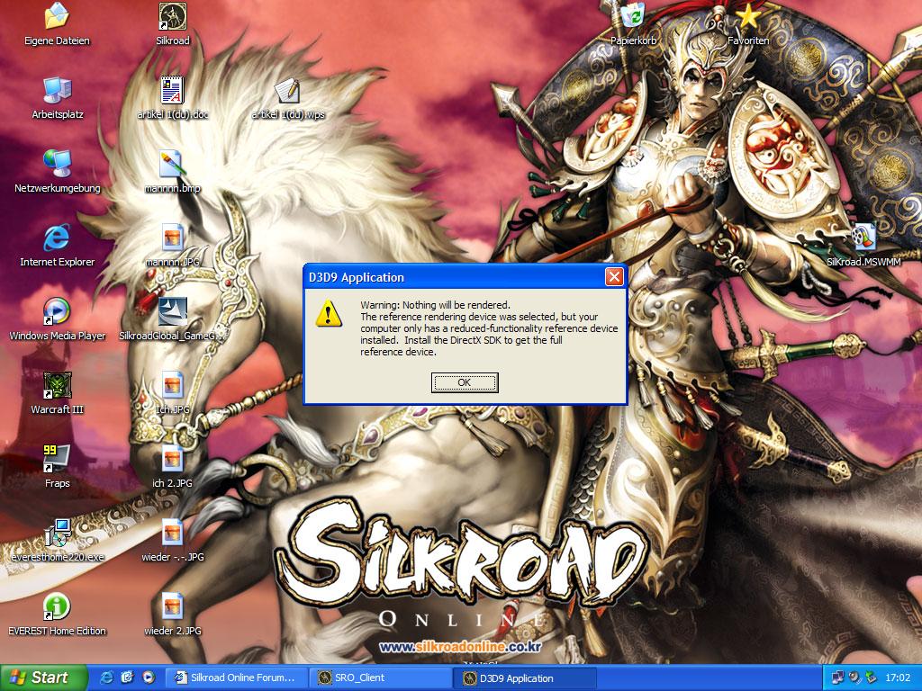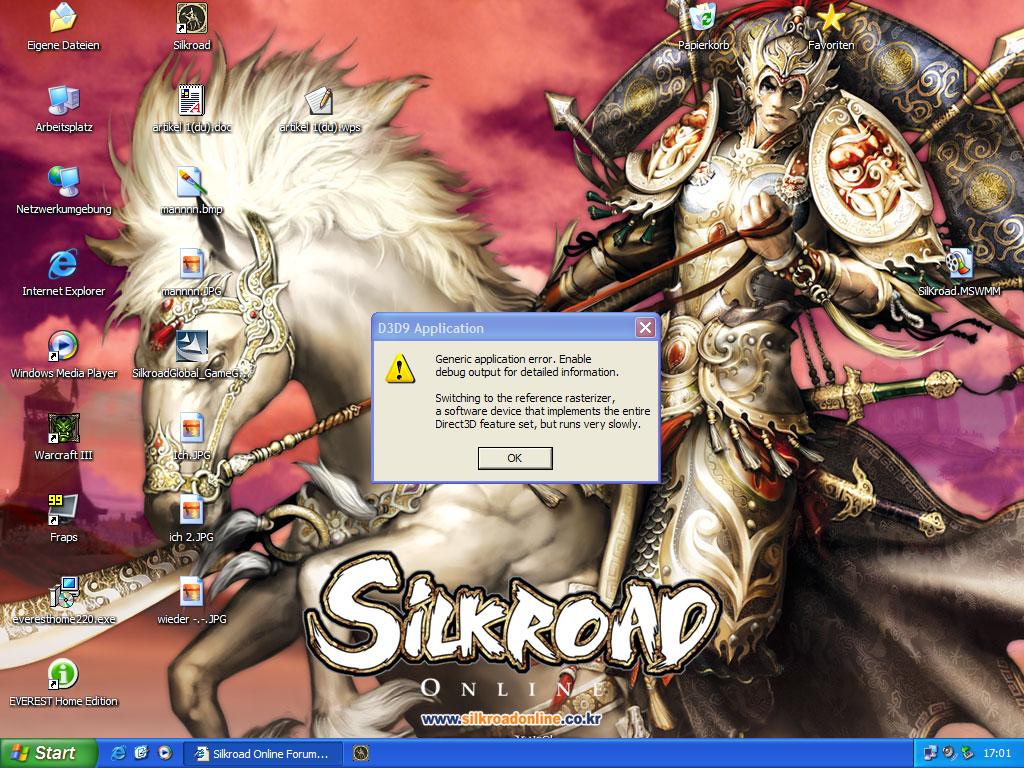 Dir ist scheinbar Silkroad einmal abgeschmiert. Wenn das passiert, dann zerschiesst das Programm immer die D3D-Treiber. Ist mir auch schon ein paar Mal passiert.