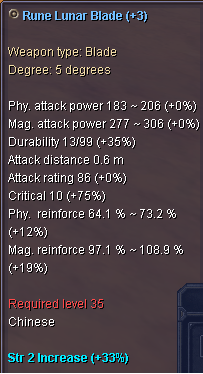 WTS LVL 35+3 Blade Crit 10 Str 2