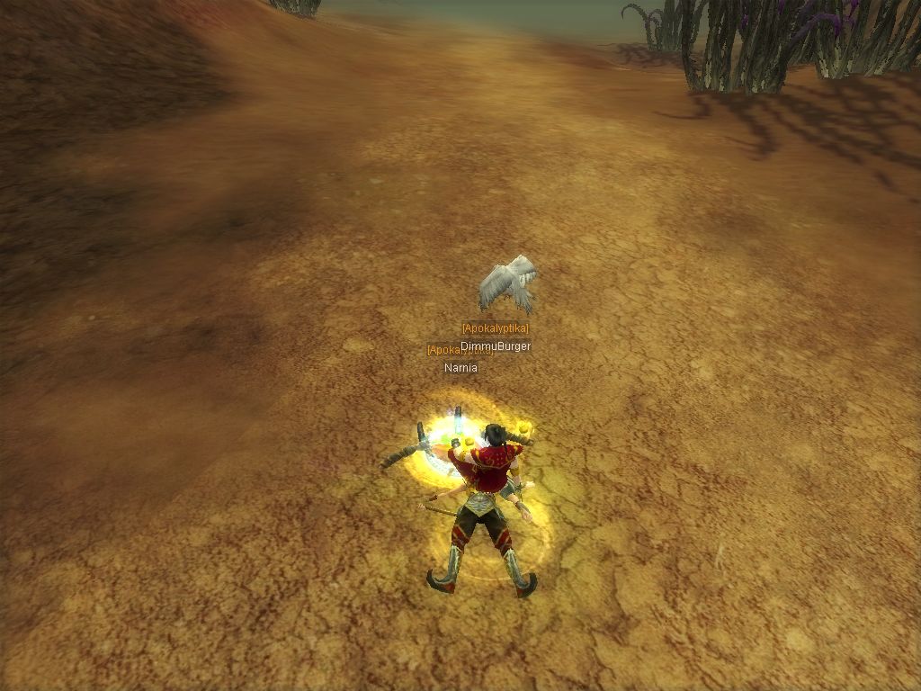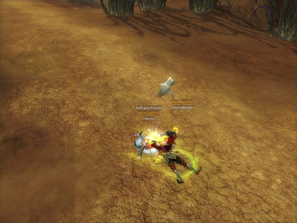 Wollte zu ihm flitzen aus Dead Ravine damit er mich in die Party aufnimmt. Dann am Hang wo Maongs und RedScorpions sich kreuzen standen auf einmal 2 RedGiants vor mir. Nur blöd dass hinter mir noch 2 normale Red Scorpions und 4 Maongs waren, also alle drauf auf mich ich gepottet wie blöde und Dimmu im TS um Hilfe angeschrieeen