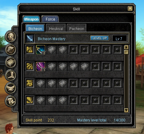 Bicheon wird alles geskillt, Fire Imbue und die ganzen Defense Buffs + Offense zeugs, Ice Imbue + Defense Buffs und Frost Nova(das war doch die Sprungattacke wo freezed gell ) und Lightning Imbue + Parry zeugs + Speed und Phantom. Bei Pacheon werd ich den Falken soweits geht Maxen und Passive.