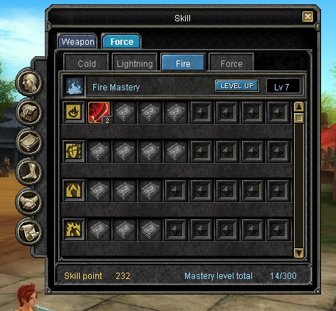 Ausserdem hat Fire ja noch den passiven Skill (ganz unten) und den phy-Damage-Buff. Diese beiden sind eigentlich die wichtigsten ... genau wegen denen wird Fire für pur STR-Chars empfohlen und genau wegen denen sollte man Fire auch so hoch wie möglich mitskillen ;)