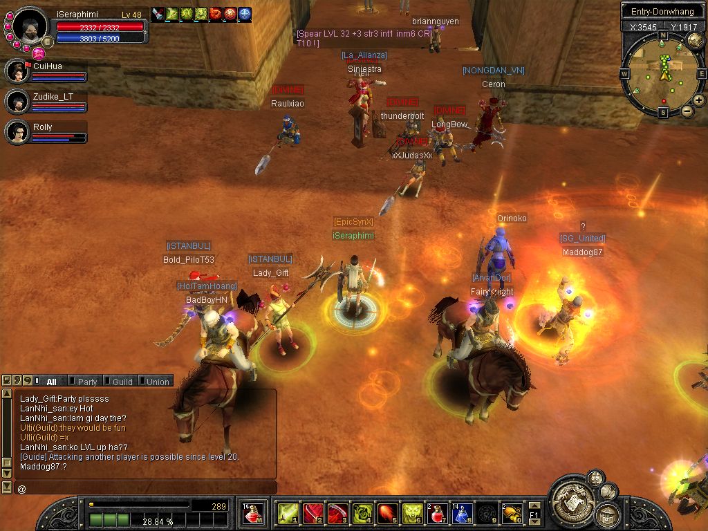 ich find das lustiger wen man von ner gilde zu nem war herraus gefordert wird die nur 10 member hat und nur 3 momentan on sind und nur einer über 30 (der leader) sich mit ner ganzen gilde anlegt und dan das flamen anfängt von wegen bot user oO nur weil man ihn mit 2 hitz killed (war übrigens ne deutsche gilde) ^^